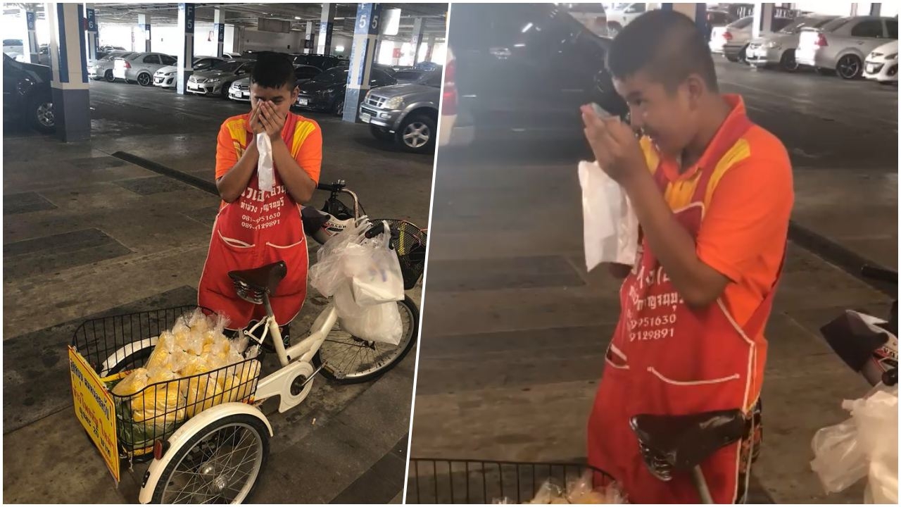 เฟซบุ๊ก Uraiporn Kaengkat โพสต์ภาพและข้อความระบุว่า วันนี้มาเจอน้องเขาที่ลานจอดรถ Big c เพชรบุรี น้องเขาขายข้าวโพดต้ม แค่น้องเห็นคนจะเดินเข้าไปซื้อ น้องเขาก็ยกมือไหว้แล้ว ไหว้แบบเยอะมากๆ น้องมองเป็นเด็กน่ารัก มีมารยาทมากๆ คนเพชรบุรี ใครเจอน้อง ช่วยกันอุดหนุนน้องเขาหน่อยนะคะ