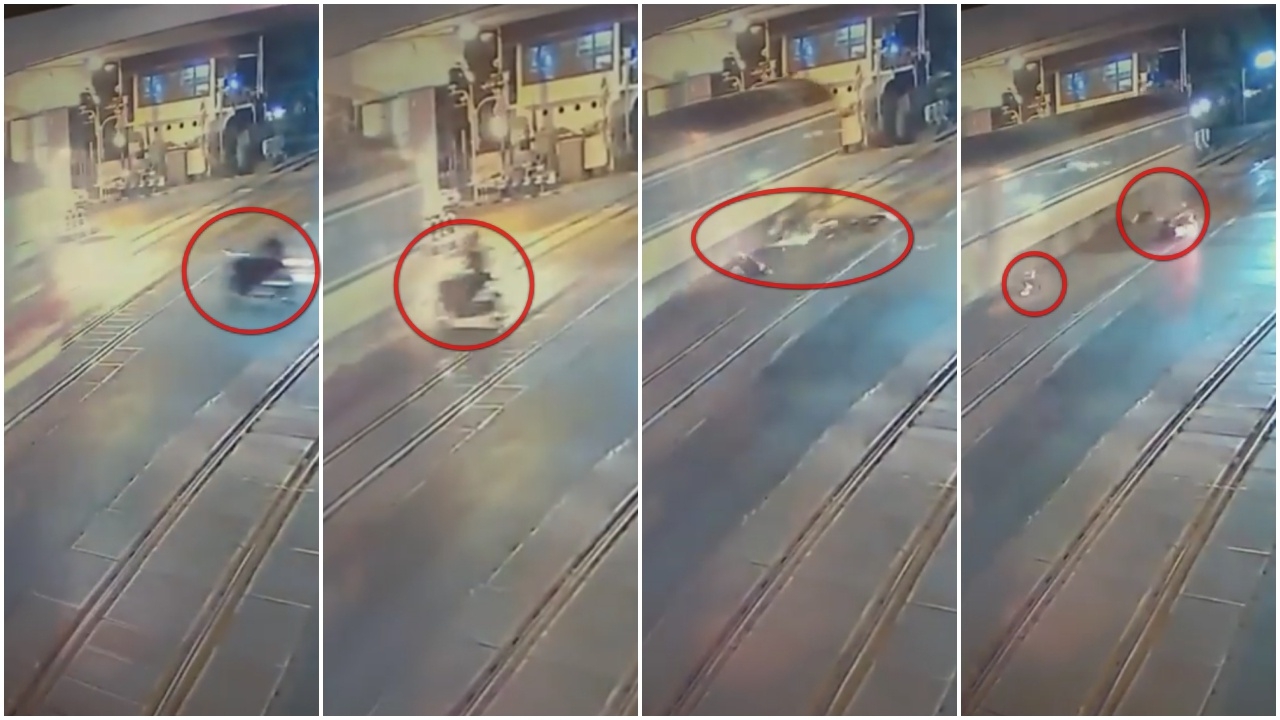 เพจทีมพีอาร์การรถไฟแห่งประเทศไทย โพสต์คลิปหวังเป็นอุทาหรณ์เตือนใจสิงห์นักบิด หลังซิ่งข้ามทางรถไฟยมราชโดยไม่รอสัญญาณ ถูกรถไฟชน และทับร่างขาด อาการสาหัส