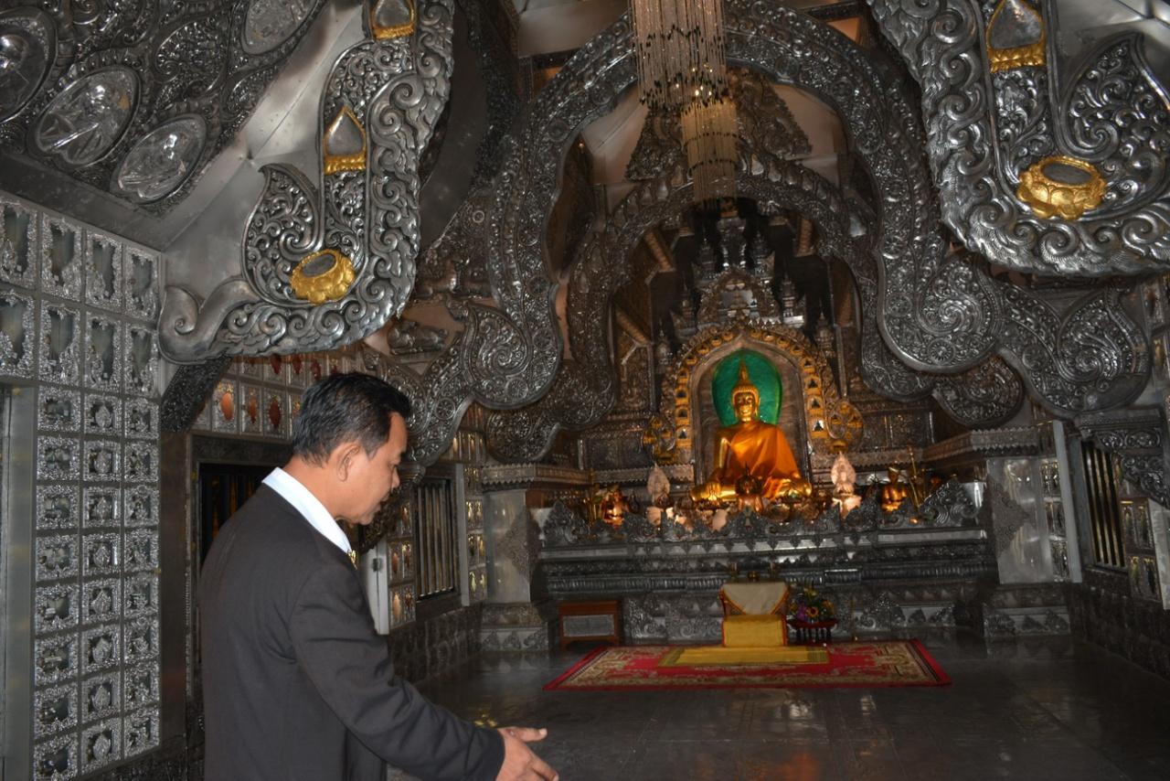 ต่อมาผู้สื่อข่าวพบกับ นายสวรรค์ แคว้นไธสง อายุ 54 ปี หรือดีเจเสียงสวรรค์ ที่มาช่วยดูแลพระอุโบสถเงิน ซึ่งเป็นเจ้าของเสียงที่ขับไล่สตรี เผยว่า วันนั้นประมาณบ่าย 3 ตนได้รับแจ้งว่ามีสตรีขึ้นไปบนพระอุโบสถเงิน ทั้งๆ ที่มีป้ายเขียนไว้ชัดเจน มีคนเข้าไปเตือน ขอให้ลง เพราะเป็นฮีตฮอยของล้านนาที่รักษากันมาหลายร้อยปี แต่ทั้งหมดไม่ยอมลง ดื้อแพ่ง ตนก็ไปขอร้องซึ่งช่วงนั้นมีพระสงฆ์นั่งสวดมนต์อยู่ จึงบอกว่าที่แห่งนี้เป็นข้อห้ามที่ยึดถือมา 517 ปีแล้ว แต่กลุ่มสตรีอ้างว่าสวดมนต์อยู่ แต่ขณะที่ออกมารออยู่หน้าอุโบสถรู้สึกเหมือนมีอะไรพุ่งเข้าหาร่างอย่างหนัก จากนั้นไม่รู้สึกตัว ไม่สามารถควบคุมตัวได้ ไม่รู้ว่าเกิดอะไรขึ้น มารู้ตอนเห็นในคลิปก็ตกใจมาก