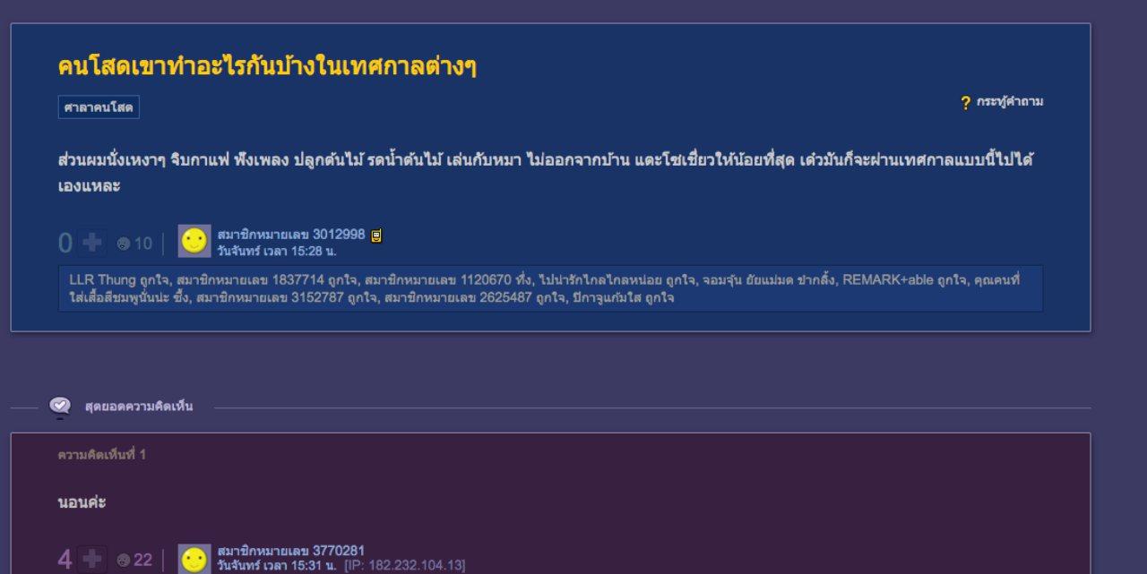 สมาชิกเว็บไซต์พันทิป สมาชิกหมายเลข 3012998 ได้ตั้งกระทู้ คนโสดเขาทำอะไรกันบ้างในเทศกาลต่างๆ โดยเขาระบุว่า ส่วนผมนั่งเหงาๆ จิบกาแฟ ฟังเพลง ปลูกต้นไม้ รดน้ำต้นไม้ เล่นกับหมา ไม่ออกจากบ้าน แตะโซเชียลให้น้อยที่สุด เดี๋ยวมันก็จะผ่านเทศกาลแบบนี้ไปได้เองแหละ