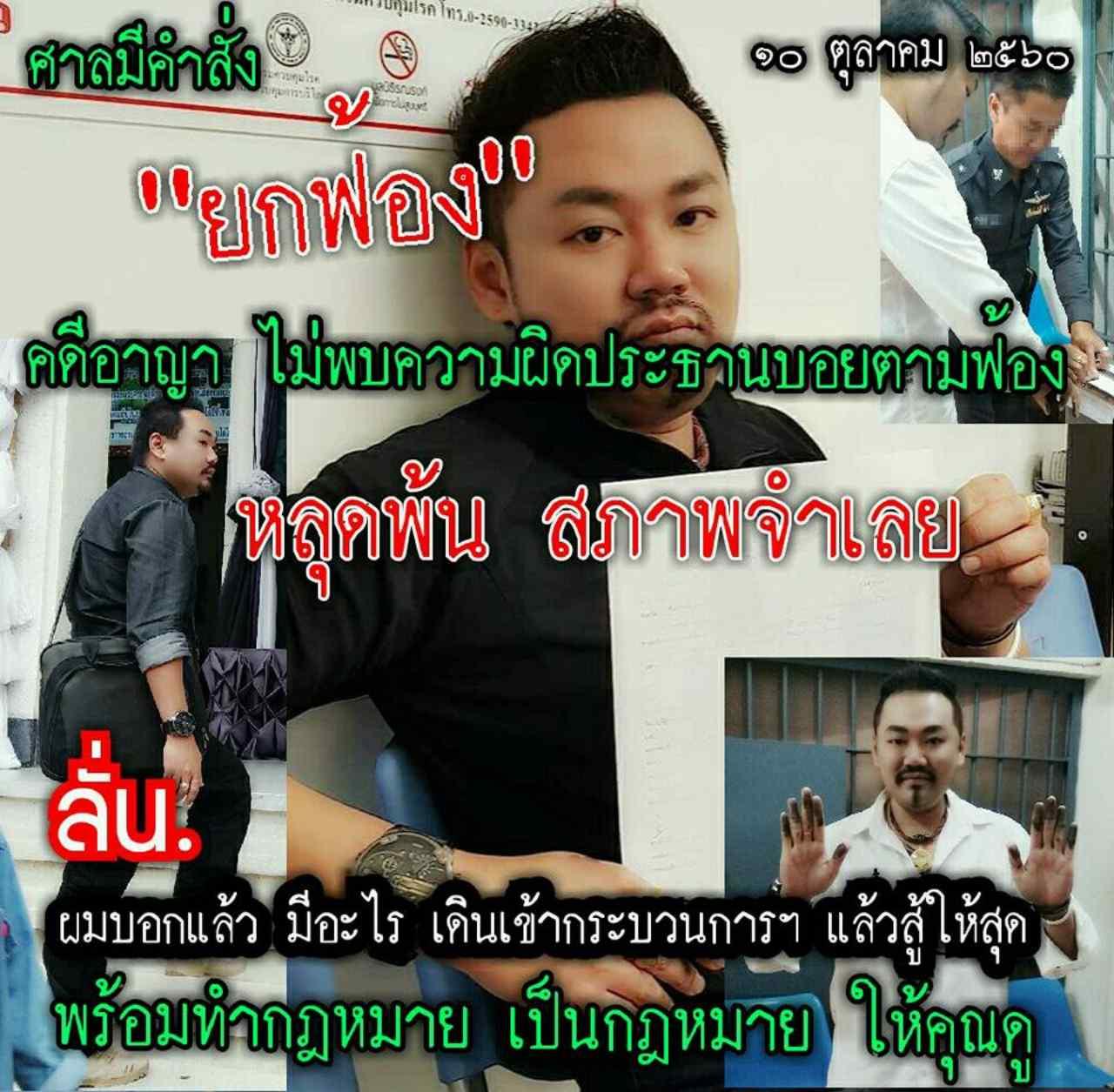 ทั้งนี้ ผมจะใช้เฟซบุ๊กของผมส่วนตัวเพจนี้ เพื่อใช้ในการชี้แจงแก้ต่างความจากอีกฝ่ายในทุกข้อกล่าวหา หักล้างทางกระแสสังคมในทุกวันบางส่วนเท่านั้น ส่วนหลักฐานหลักที่ใช้ได้ดีผมยังคงที่จะไม่ลืมที่จะไม่หลงมัวเมาเอามัน มาลงโต้กันเพื่อกลบกระแสสังคมให้ดูดี แต่ผมจะพึงนำไปใช้ตามเจตนาและครรลองประจักษ์หลักฐาน ที่ใช้ในศาลเพื่อพิจารณาผิดถูกให้กับคนอย่างผม และคนอย่างกระบวนการพวกเขาเท่านั้น ต่อไป ประธานบอย