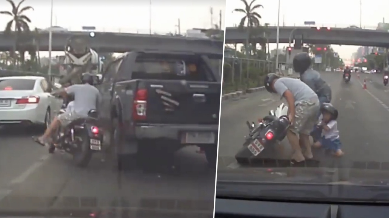 โซเชียลแชร์คลิป กระบะใจดำ เปลี่ยนเลนเบียดรถจักรยานยนต์สองพ่อลูกล้ม เด็กน้อยโดนรถทับเต็มๆ แต่ไม่คิดช่วยเหลือ ขับหนีหน้าตาเฉย...