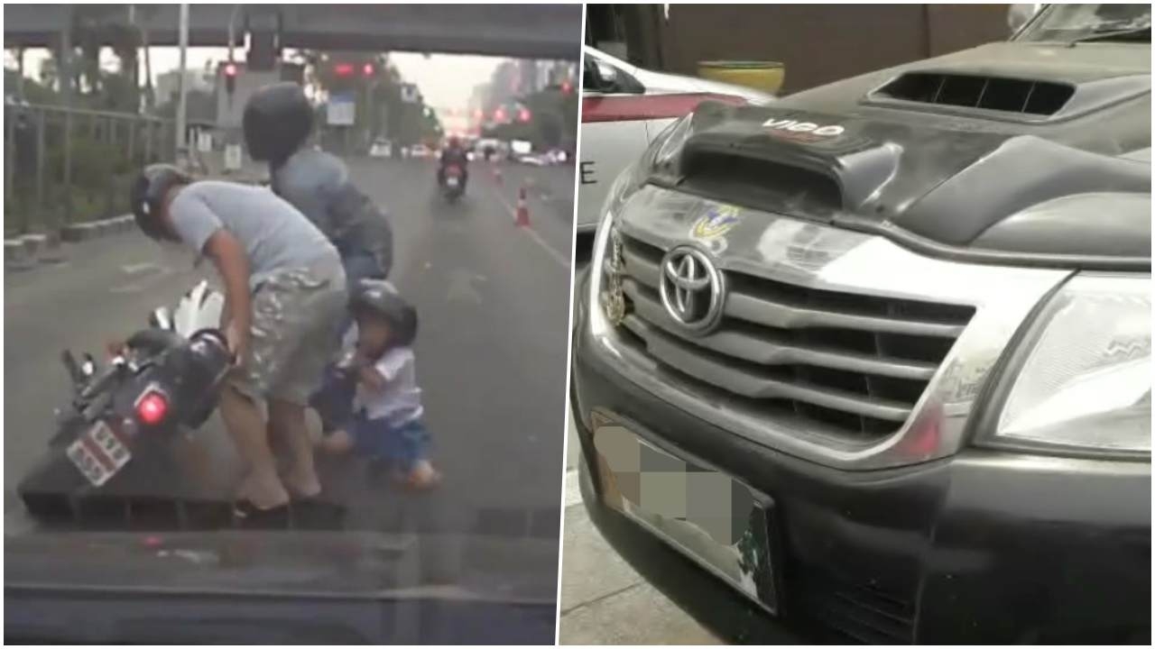 จากกรณีโซเชียลแห่แชร์คลิปวิดีโอจากกล้องหน้ารถ ที่มีรถยนต์กระบะ โตโยต้า ไฮลักซ์ วีโก้ สีดำ ได้ขับเปลี่ยนเลนไปช่องทางขวาที่มีรถสวนมาแล้วหักหลบเข้ามาในช่องทางด้านซ้ายทำให้เบียดรถจักรยานยนต์ของสองพ่อลูกที่ขี่มาในช่องทางปกติจนล้มลง ก่อนที่รถกระบะคันดังกล่าวจะขับออกไปเหมือนไม่มีอะไรเกิดขึ้น ตามที่ได้รายงานข่าวไปก่อนหน้านี้