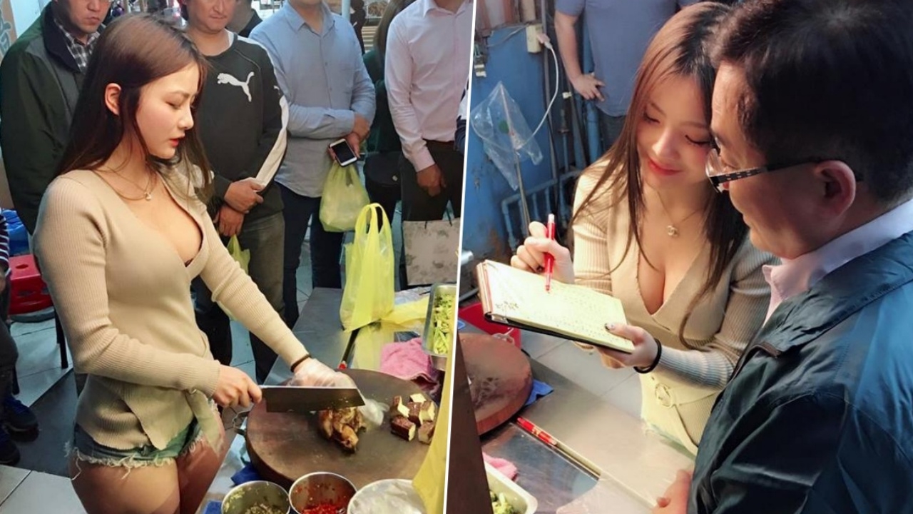 โลกออนไลน์มีการแชร์เรื่องราวจากผู้ใช้เฟซบุ๊ก 小桃子 ที่ได้โพสต์ภาพสาวสวยคนหนึ่งสวมกางเกงยีนส์ขาสั้นจุ๊ดจู๋จนน่าหวาดเสียว กับเสื้อแขนยาวคอลึก กำลังขายเนื้อตุ๋นอยู่ในตลาดแห่งหนึ่งในเมืองไถจง ของไต้หวัน