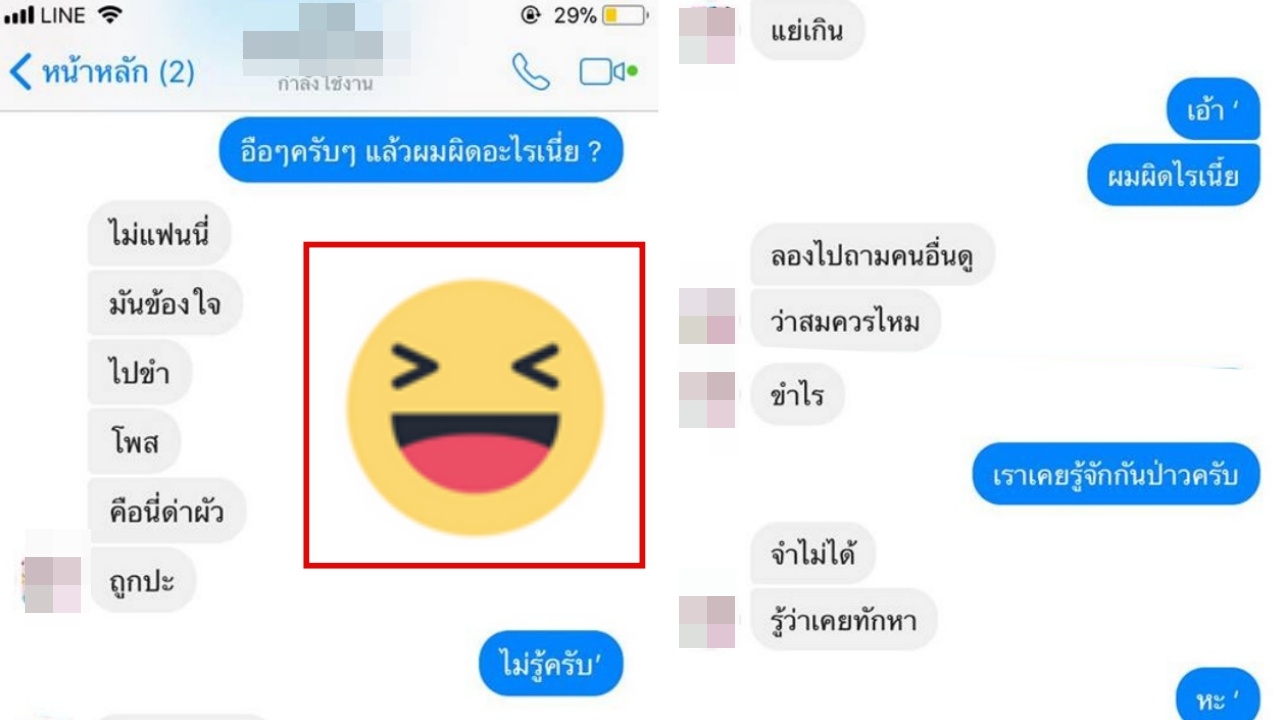 หนุ่มสุดงง กดแสดงความรู้สึกหัวเราะในโพสต์ของเพื่อนในเฟซบุ๊กตามปกติ แต่อีกฝ่ายกลับไม่พอใจ ส่งข้อความมาต่อว่า ลั่น เจอแบบนี้อยู่ยากแล้วครับ...