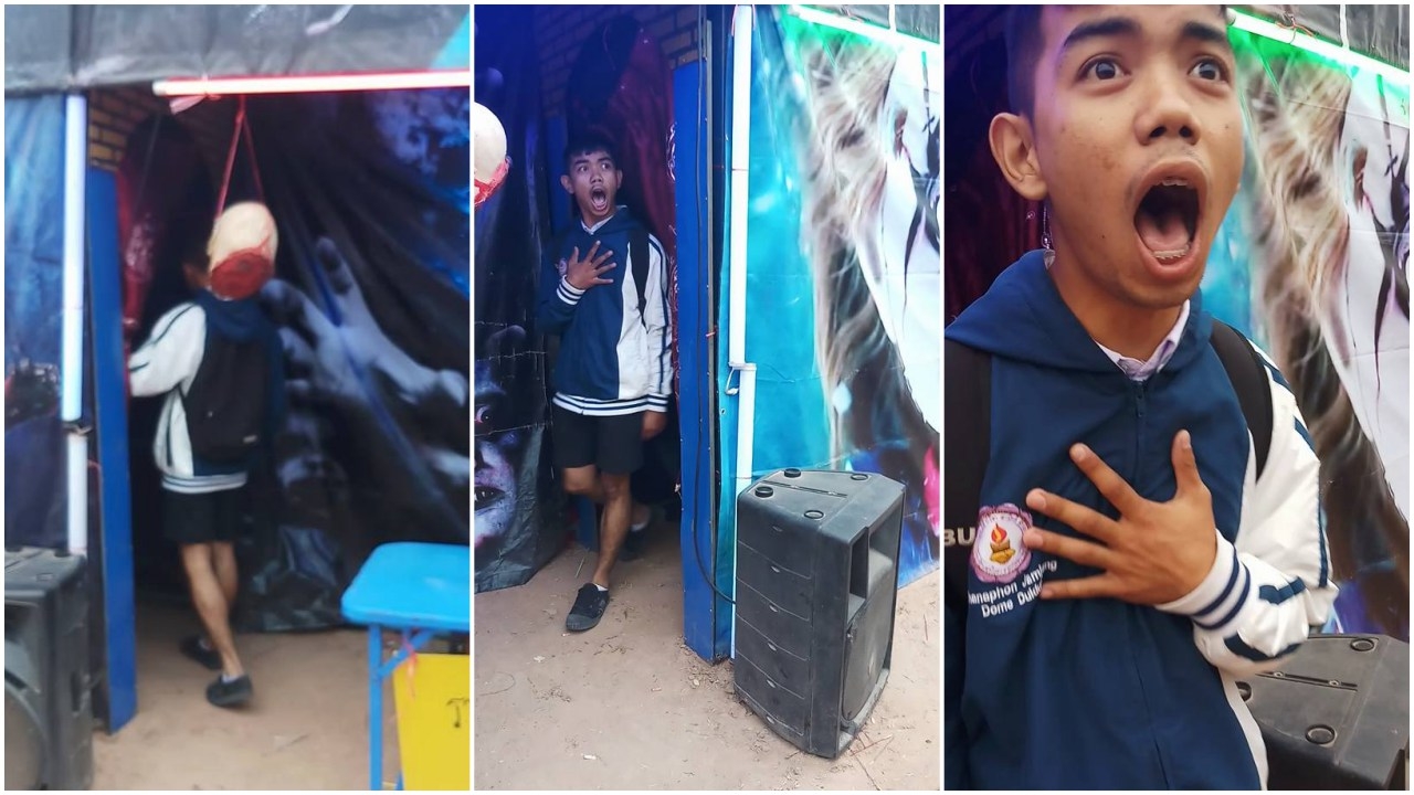 เพื่อนบอกผมหลอนกว่าผี! หนุ่มอัดคลิปวินาทีเพื่อนเข้าบ้านผีสิง 20 บาท กลางงานวัด เดินวนไปมาไม่ถึง 1 นาทีเดินออกมาหน้าสุดหลอน