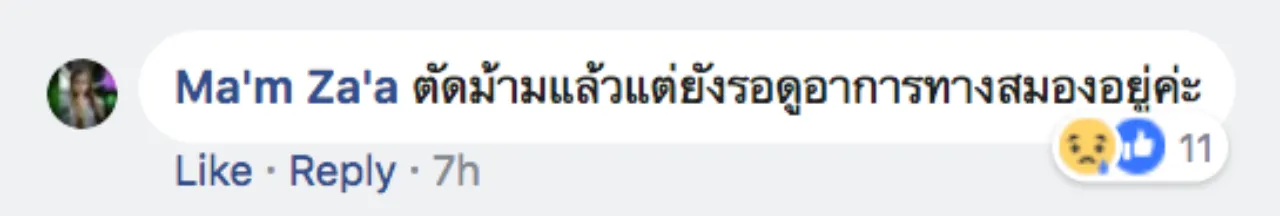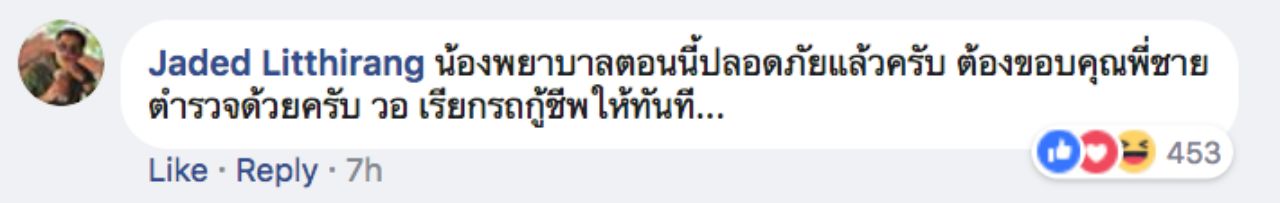ต่อมาเพจเฟซบุ๊ก YouLike (คลิปเด็ด) ได้นำเรื่องราวดังกล่าวมาแชร์ จนมีผู้ใช้เฟซบุ๊กรายหนึ่งเข้ามาแสดงความคิดเห็นว่า “น้องพยาบาลตอนนี้ปลอดภัยแล้วครับ ต้องขอบคุณพี่ชายตำรวจด้วยครับ วอ เรียกรถกู้ชีพให้ทันที” ทางด้านผู้ใช้เฟซบุ๊ก Ma'm Za'a ที่คาดว่าจะเป็นคนรู้จักหรืออาจจะเป็นครอบครัวของพยาบาลรายนี้เข้ามาตอบว่า “ตัดม้ามแล้วแต่ยังรอดูอาการทางสมองอยู่ค่ะ”.