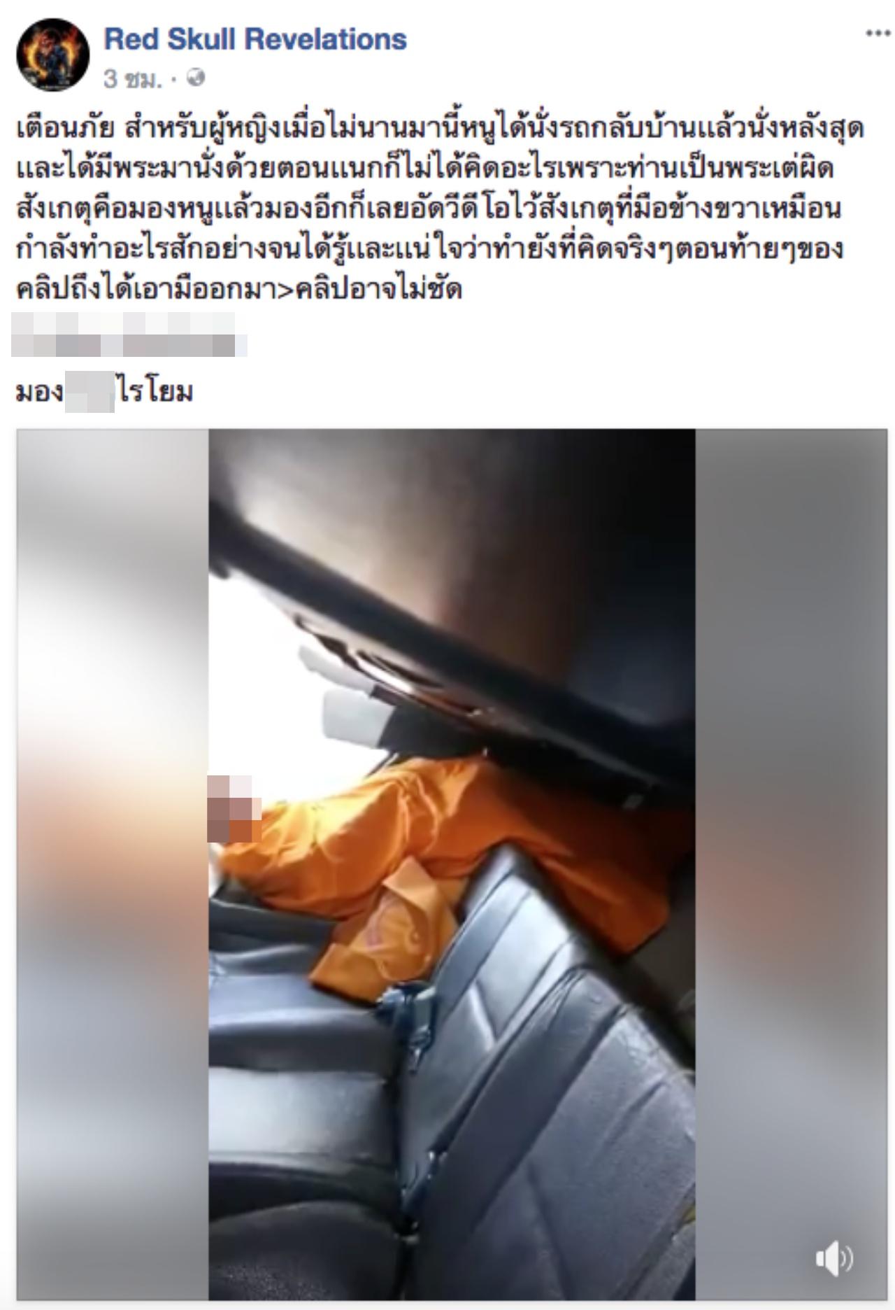 เพจเฟซบุ๊ก Red Skull Revelations ได้แชร์โพสต์จากผู้ใช้เฟซบุ๊กสาวรายหนึ่ง ที่ได้โพสต์คลิปวิดีโอพระรูปหนึ่งกำลังนั่งอยู่เบาะหลังของรถเมล์ พร้อมกับเล่าว่า ตอนแรกก็ไม่ได้คิดอะไรเพราะท่านเป็นพระ แต่เห็นมองมาทางตนบ่อยครั้งจึงอัดคลิปวิดีโอไว้ สังเกตที่มือเหมือนกำลังทำอะไรสักอย่างขยับไปมาใต้จีวร