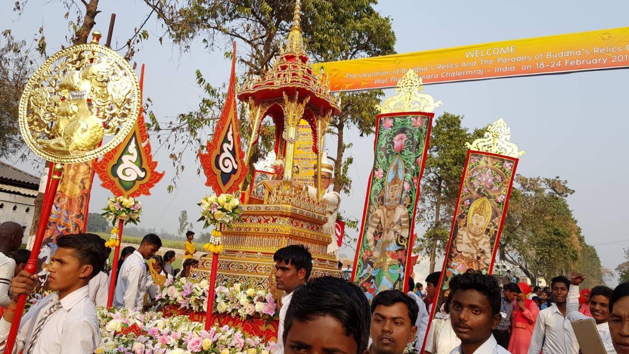 พระธรรมทูตไทย ชาวพุทธ และชาวอินเดีย จัดขบวนแห่พระบรมสารีริกธาตุ จากวัดไทยกุสินารา ไปยังมกุฏพันธนเจดีย์ และสถูปปรินิพพาน สถานที่ถวายพระเพลิงพระพุทธเจ้า ด้วยความศรัทธา...