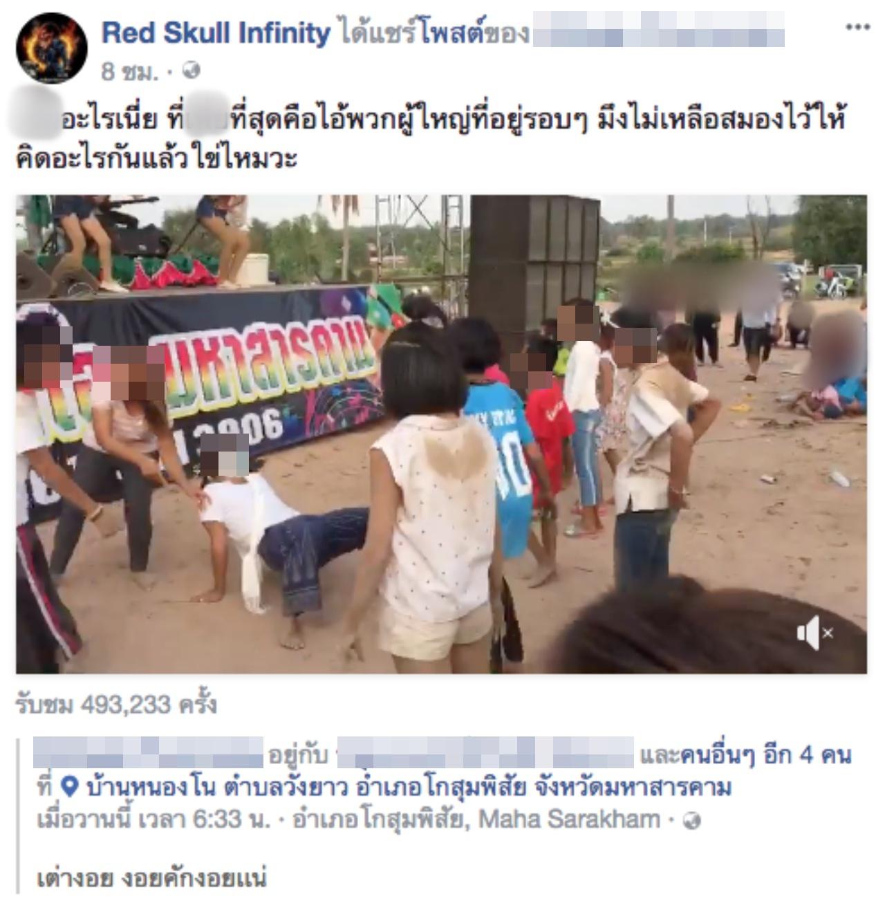 วันที่ 26 ก.พ.61 มีรายงานว่า โลกออนไลน์ต่างวิพากษ์วิจารณ์คลิปวิดีโอจากผู้ใช้เฟซบุ๊กรายหนึ่ง ซึ่งคลิปของเด็กๆ หลายคน อายุประมาณ 4-10 ขวบ มีทั้งเด็กผู้หญิง และเด็กผู้ชาย กำลังเต้นอย่างเมามันจนเนื้อตัวเต็มไปด้วยฝุ่นอยู่หน้าเวทีหมอลำ อ.โกสุมพิสัย จ.มหาสารคาม