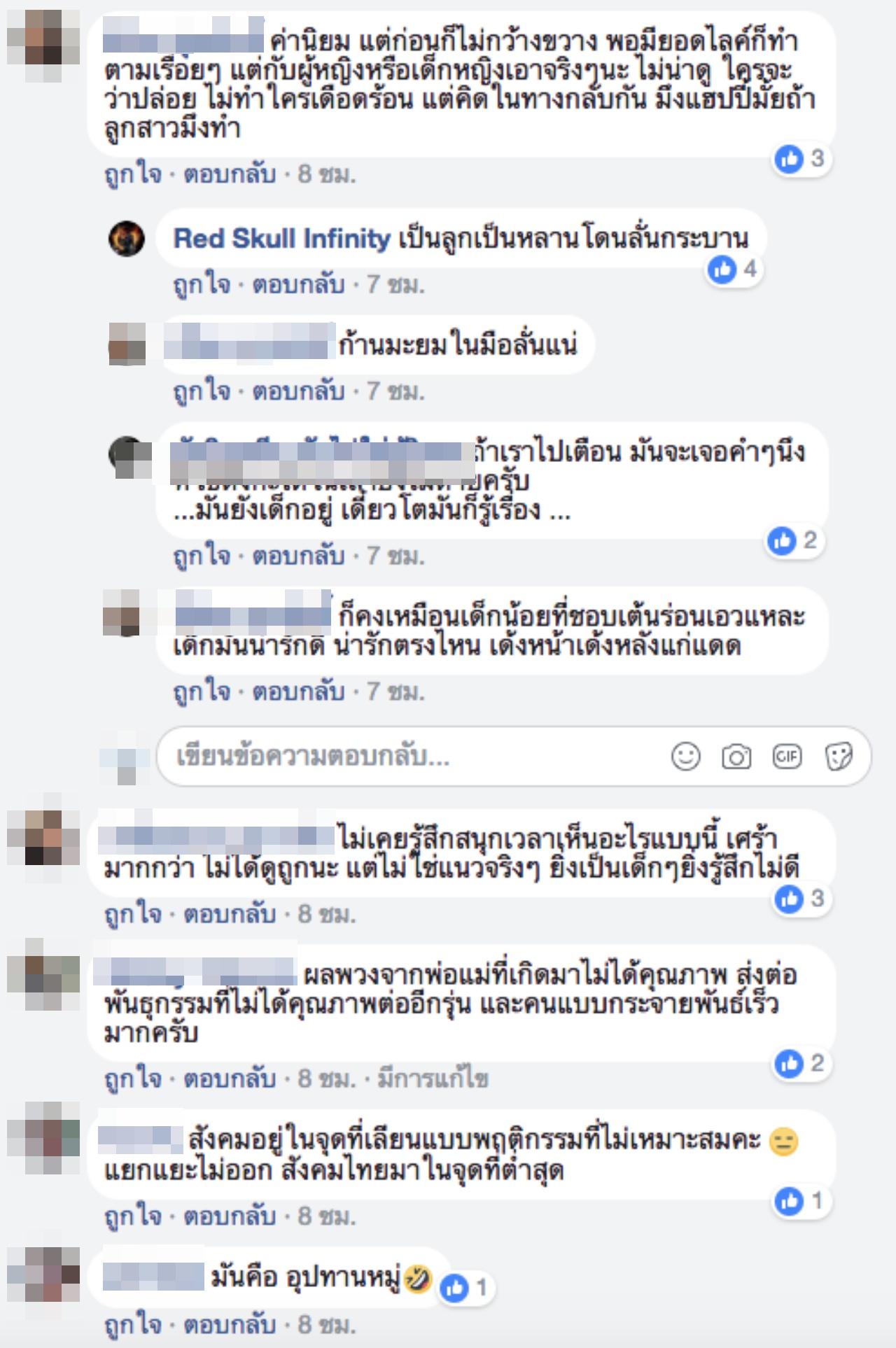 โดยพบว่าเด็กบางรายเต้นด้วยท่าทางไม่เหมาะสม ไม่ว่าจะเป็นท่าร่อนเอว หรือการนั่งกับพื้นแล้วเด้งตามจังหวะเพลง อย่างไรก็ตามได้มีคนเข้ามาแสดงความคิดเห็นว่า ดูแล้วรู้สึกเป็นห่วงเด็กๆ กลุ่มนี้ที่มีพฤติกรรมเลียนแบบวัยรุ่นที่ออกมาเต้นเรียกยอดไลค์ พร้อมกับตำหนิผู้ใหญ่ที่ไม่เข้ามาห้ามเด็กๆ อย่างไรก็ตาม ล่าสุด คลิปดังกล่าวได้ถูกลบออกไปแล้ว.