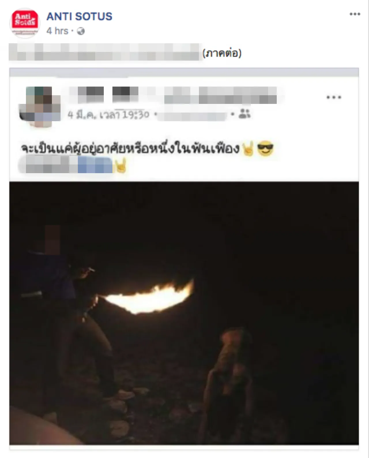 ขณะที่ทางด้าน แฟนแพจเฟซบุ๊ก ANTI SOTUS ก็โพสต์ภาพการรับน้องเช่นกัน โดยคาดว่าจากสถาบันการศึกษาเดียวกัน ซึ่งเป็นโพสต์ที่มีข้อความว่า “จะเป็นแค่ผู้อยู่อาศัยหรืแหนึ่งในฟันเฟือง” ซึ่งทั้ง 2 โพสต์มีชาวเน็ตที่ได้เห็นต่างเข้ามาวิพากษ์วิจารณ์กันอย่างมากมายและตั้งคำถามว่าเหมาะสมหรือไม่.