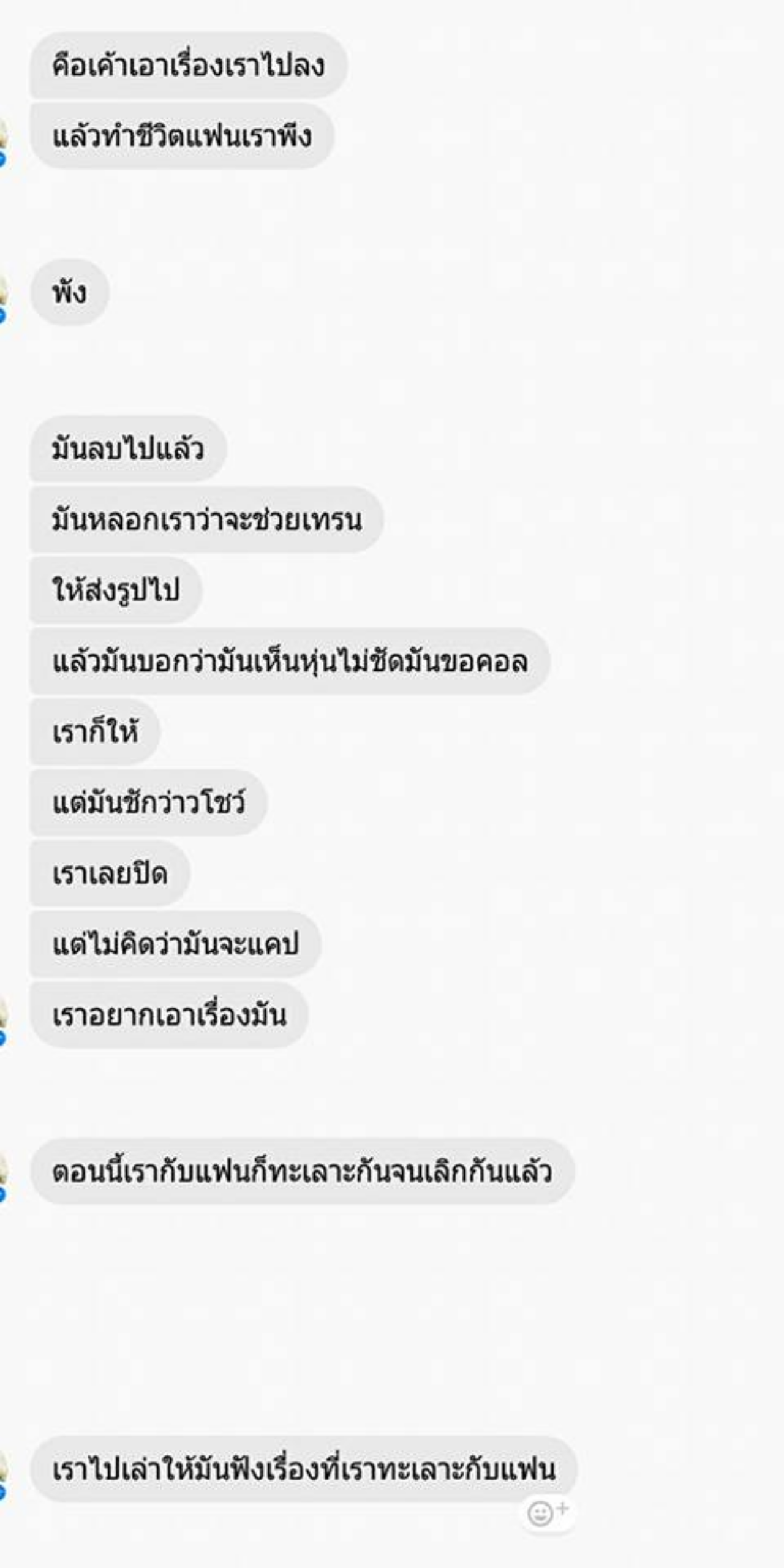 อุทาหรณ์! สาวสวยหลงเชื่อคารมหนุ่มหล่อ อ้างตัวว่าเป็นเจ้าของฟิตเนสทักแชตมาตีสนิท ขอให้ส่งภาพลับมาช่วยดูไขมัน พร้อมชักชวนให้เซ็กซ์โฟนสยิว สุดท้ายชีวิตพัง ภาพหลุดจนต้องเลิกกับแฟน...