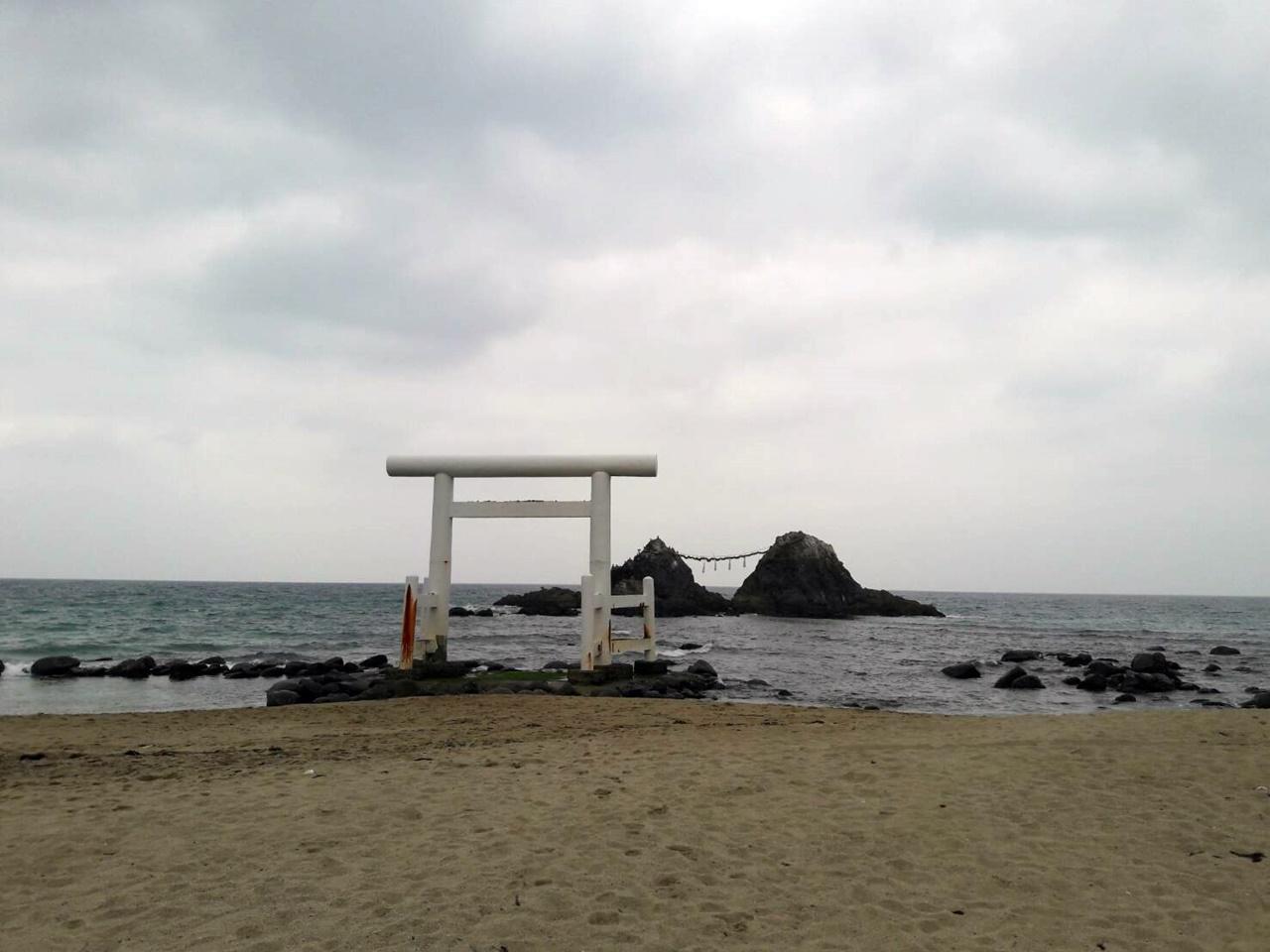 2. ซากุราอิ ฟุตามิงะอุระ (Futamigaura) โทริอิสีขาวในน้ำทะเล ตั้งอยู่ที่ฮิโตชิมะ จ.ฟุกุโอกะ โดยด้านหลังของโทริอิจะมีหินคู่เมโทอิวะ โดยจะเป็นโขดหิน 2 อันตั้งเคียงข้างกันและถูกโยงด้วยเชือก เรียกว่า โขดหินสามี-ภรรยา มีความเชื่อว่า เป็นสถานที่แห่งการเชื่อมสัมพันธ์