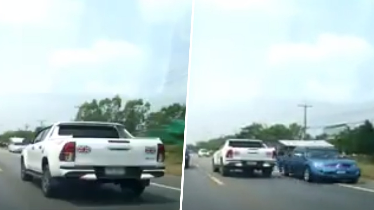 เพจดังโพสต์คลิปกล้องหน้ารถ เจอกระบะขับกินเลนอีกฝั่งไปทั้งเลน ซ้ำรถสวนทางมาก็ไม่หลบ ชาวเน็ตสวดยับพฤติกรรม