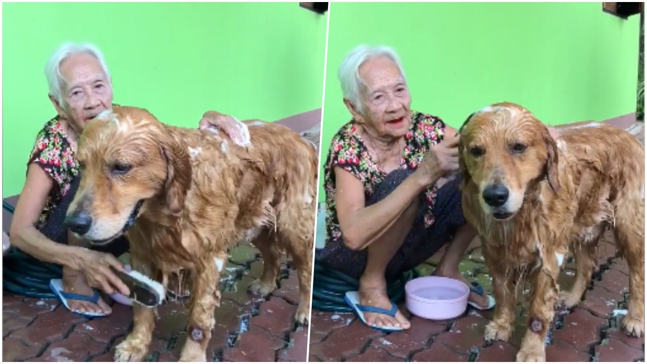 เฟซบุ๊ก Nutsara Horasat โพสต์คลิปผ่าน กลุ่มรักหมา พร้อมระบุว่า 555 โดนอีกแล้ว..ลีโอ #ไอ้หนูของยาย ซึ่งในคลิปดังกล่าว คุณยายพูดคุยกับลีโอ สุนัขพันธุ์โกลเด้น รีทรีฟเวอร์ ระหว่างที่คุณยายกำลังอาบน้ำให้ลีโอ