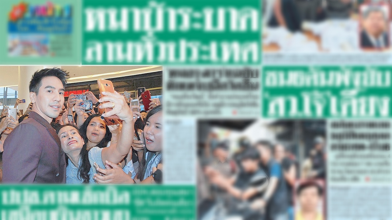 ทั้งนี้ ภาพดังกล่าวเป็นหน้า 1 ของหนังสือพิมพ์ไทยรัฐ ฉบับวันที่ 21 มี.ค.61 ขณะที่ โป๊ป-ธนวรรธน์ วรรธนะภูติ พระเอกสุดฮอต เดินทางไปที่ห้าง Zpell แอท ฟิวเจอร์พาร์ค รังสิต โดยมีแฟนละครต่างมารอแล้วพากันถ่ายเซลฟี่ ทำให้เกิดเรื่องโป๊ะแตกแบบน่ารักของแม่ลูกคู่หนึ่ง ด้านชาวเน็ตต่างฮาลั่นกันทั้งโซเชียล.