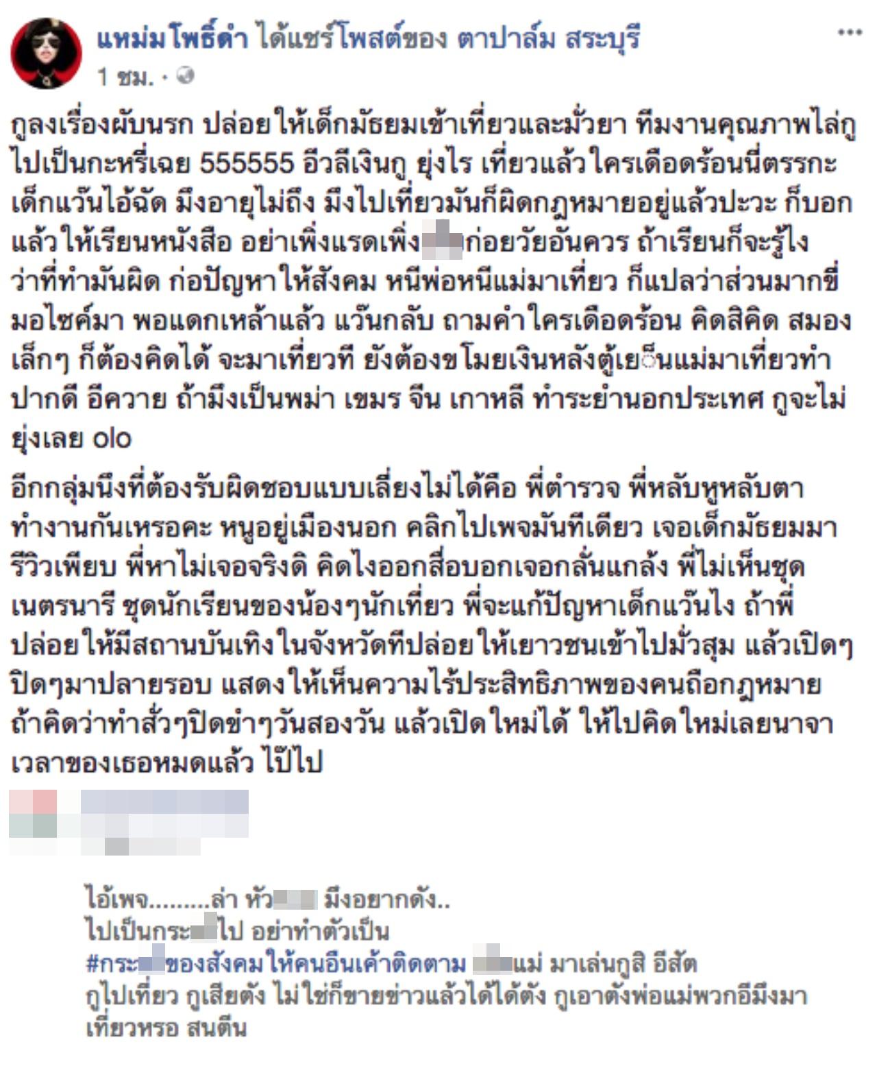 วัยรุ่นโจมตีเพจ แหม่มโพธิ์ดำ หลังแฉภาพผับดังสระบุรีปล่อยเด็กอายุต่ำว่าเกณฑ์เข้ามั่วสุม ลั่น เรื่องนี้ตำรวจต้องรับผิดชอบ ถามหลับหูหลับตาทำงานกันเหรอ...
