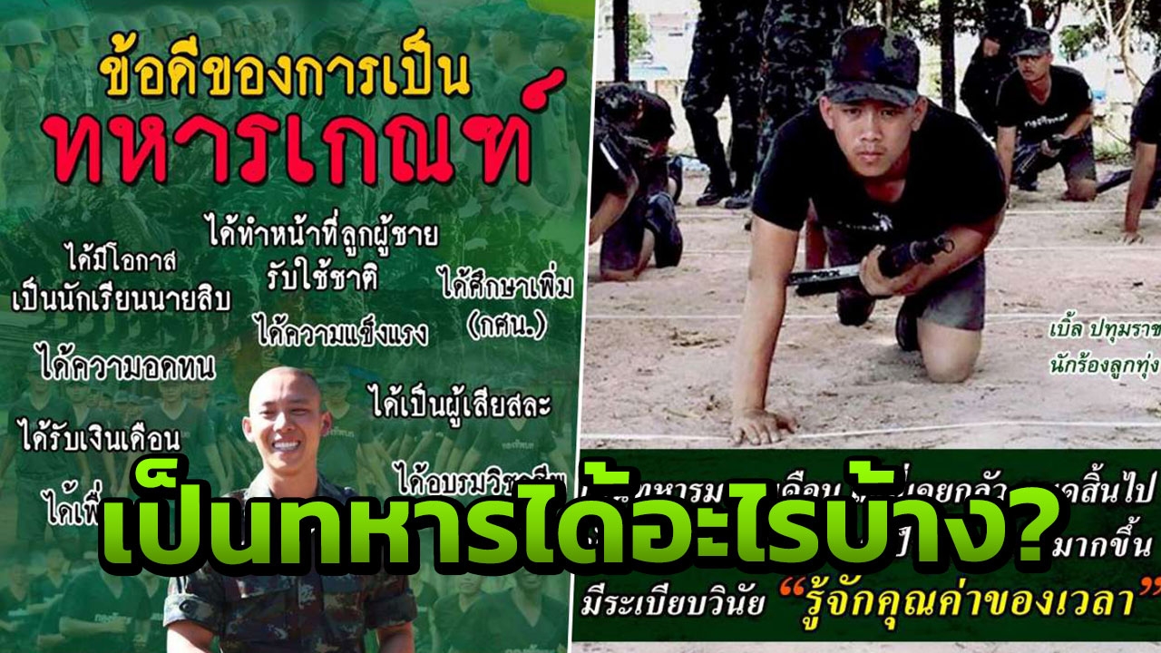 ชาวเน็ตแห่กดแชร์ กดไลค์ แถมคอมเมนต์ '9 ข้อดีของการเป็นทหารเกณฑ์' ที่ศูนย์ประชาสัมพันธ์กองทัพบก ได้จัดทำขึ้น โดยมี เบิ้ล ปทุมราช เป็นพรีเซ็นเตอร์