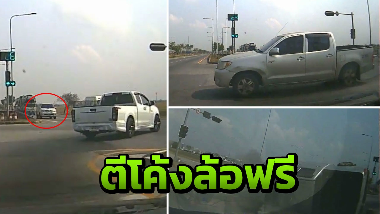 หนุ่มโพสต์คลิปกล้องหน้ารถ จับนาทีระทึกอุบัติเหตุรถพลิกคว่ำ กระบะเร่งเครื่องหวังพ้นไฟแดง เจอรถอีกฝั่งออกตัวจากไฟเขียว จำต้องหักหลบกะทันหันทำพลิกคว่ำทันที ซ้ำชนรถอีกคัน