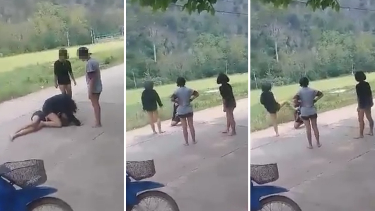 เพจดังโพสต์คลิปเด็กสาวผมสั้น รุมทำร้ายเด็กชายใจหญิงผมเกรียน ตะโกนลั่นสั่งกราบเท้า ก่อนยกขายันเข้าที่ใบหน้าคู่กรณี