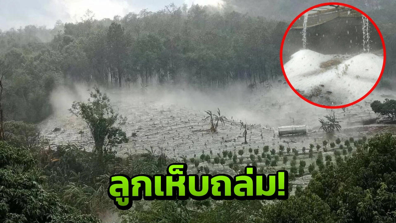 ตะลึง! พายุฤดูร้อน ทำลูกเห็บถล่มบ้านผานกกก อ.แม่ริม จ.เชียงใหม่ ส่งผลให้มีสภาพขาวโพลนไปทั่วทั้งไร่ คล้ายเมืองหิมะ...