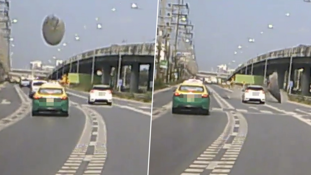เปิดคลิประทึก! ชิ้นส่วนถังโม่ปูนกระเด็นหวิดหล่นทับเก๋งขาว เคราะห์ดีรอดตายหวุดหวิด บริเวณช่วงทางโค้งบางพูน ปทุมธานี...