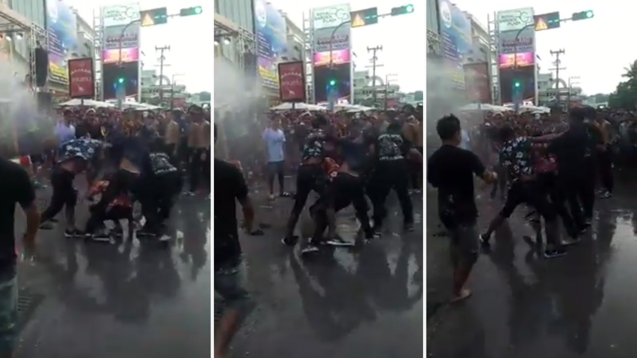ชายหลายคนเดือด ต่อยตีในงานวันไหลพัทยา เจ้าหน้าที่ประกาศห้ามผ่านไมค์ท่ามกลางคนมาเล่นน้ำโห่ไล่ดังสนั่น สุดท้ายถูกตำรวจคุมตัว...