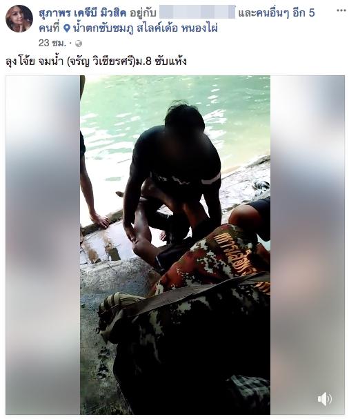 นอกจากนี้ ยังมีการแชร์คลิปขณะชาวบ้านกำลังช่วยชีวิตคนจมน้ำที่น้ำตกซับชมพู ขณะรอรถกู้ภัยมารับ ซึ่งพบว่าชายผู้เสียชีวิตได้มาเที่ยวกับลูกสาว และได้จมน้ำในอ่างเด็ก แต่ไม่มีคนเห็น จนกระทั่งมีเด็กมาเล่นน้ำและไปชนพอดี