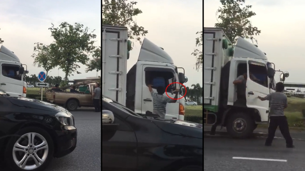 จากคลิปจะเห็นคนขับกระบะคล้ายกับกำลังโต้เถียงและต่อว่าคนขับรถบรรทุก ก่อนจะได้ยินเสียงดังขึ้น 1 ครั้งขณะรถผ่านบังกล้องพอดี แต่จากการสังเกตพบว่ากระจกมองข้างของรถบรรทุกบิดคาดว่าถูกคนขับกระบะใช้มือตบอย่างแรง จากนั้นคนขับกระบะกลับไปที่รถ ก่อนจะได้ยินคนขับรถบรรทุกตะโดนขึ้นทำนองว่า “มาเลยๆ มา” คนขับกระบะจึงคว้าค้อนพุ่งตรงมายังคู่กรณีทำท่าคล้ายจะฟาด ก่อนที่คนขับรถบรรทุกจะคว้าบางสิ่งที่คล้ายอาวุธมาชี้หน้าและโต้เถียงกันต่อ ทั้งนี้ ประจวบกับเป็นช่วงที่รถเคลื่อนตัวผู้โพสต์จึงเก็บภาพได้เพียงเท่านั้น.