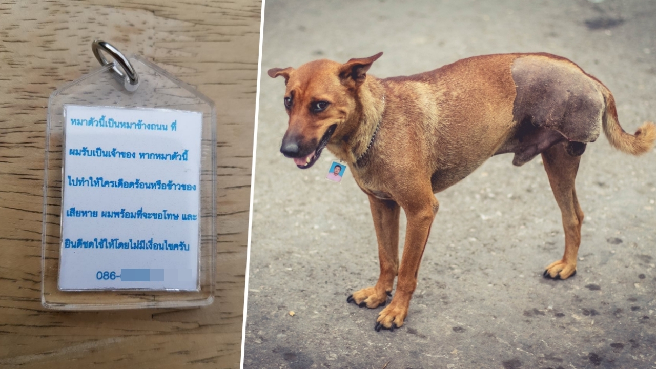 คนรักหมาตัวอย่าง! หนุ่มทำจี้รูปหน้าตัวเองห้อยคอหมาจรจัดขาพิการ เขียนด้านหลังแสดงความเป็นเจ้าของ บอกหมาตัวนี้ผมรับผิดชอบเอง หากไปทำความเดือดร้อน ยินดีชดใช้โดยไม่มีเงื่อนไข...