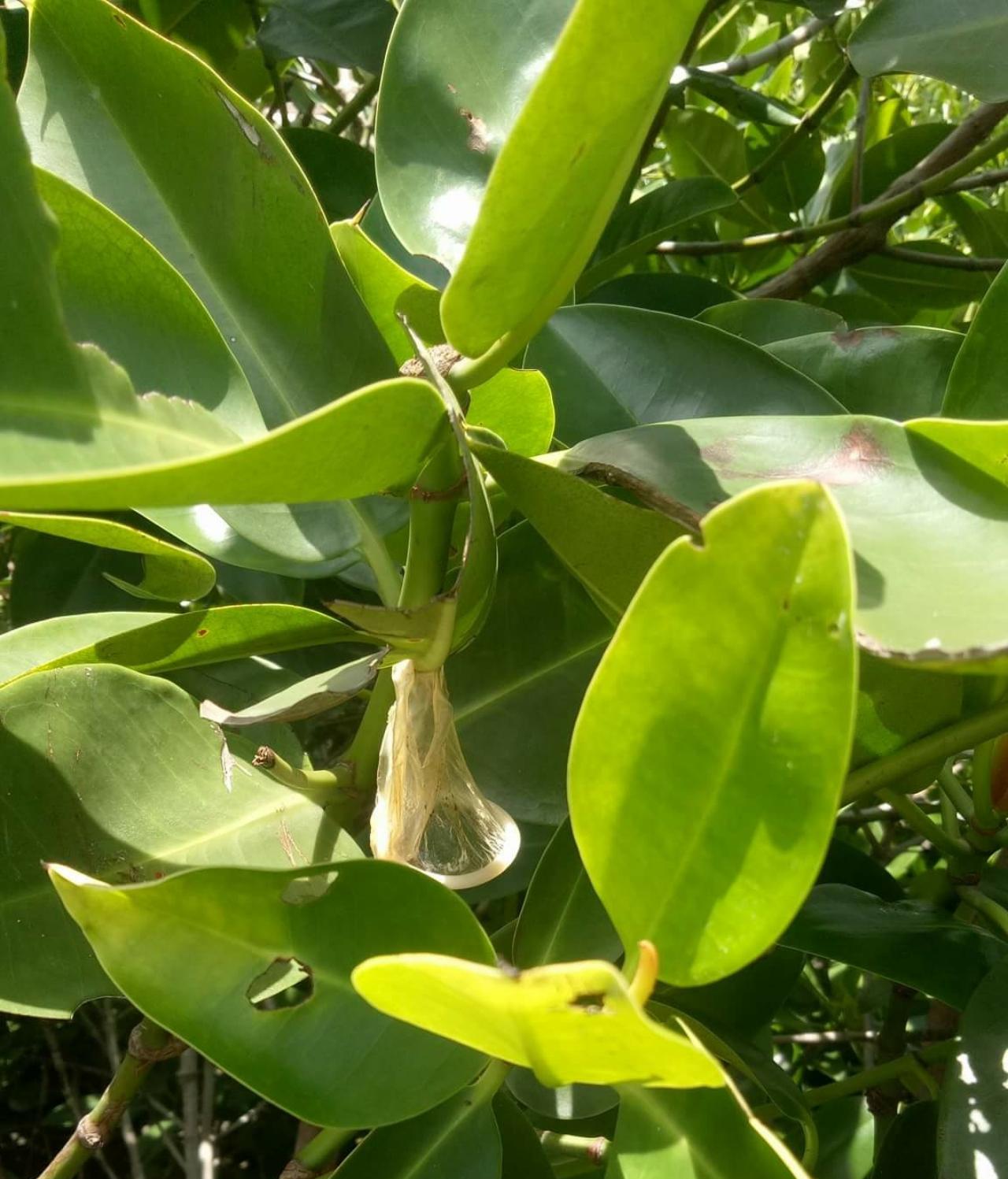 นอกจากนี้ยังโพสต์ใบต้นโกงกางที่มีถุงยางอนามัยใช้แล้วห้อยอยู่ พร้อมกับระบุว่า ใบโกงกางริมสะพานไม้แปลกดีครับ เลยเอามาให้ชม ขอบอกยังมีเรื่องเล่าเกี่ยวกับพฤติกรรมของคนบางกลุ่มในป่าชายเลนอีกนะครับ...ถ้าเจ้าหน้าที่ยังนิ่งเฉยกับสิ่งที่เกิดขึ้นในตอนนี้ ไม่มีมาตรการแก้ปัญหาที่จริงจัง เดี๋ยวเจอกันอีกครับ #ป่าชายเลนชลบุรี