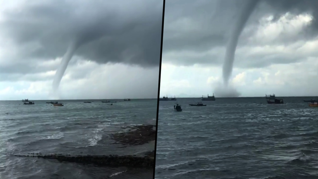 สาวไลฟ์สดผ่านเฟซบุ๊ก เจอพายุงวงช้างลูกใหญ่ม้วนตัวจากเมฆครึ้มบนฟ้าลงสู่ทะเลบริเวณเกาะล้าน พัทยา ทำน้ำแตกออกถูกดูดขึ้นสูงน่ากลัว