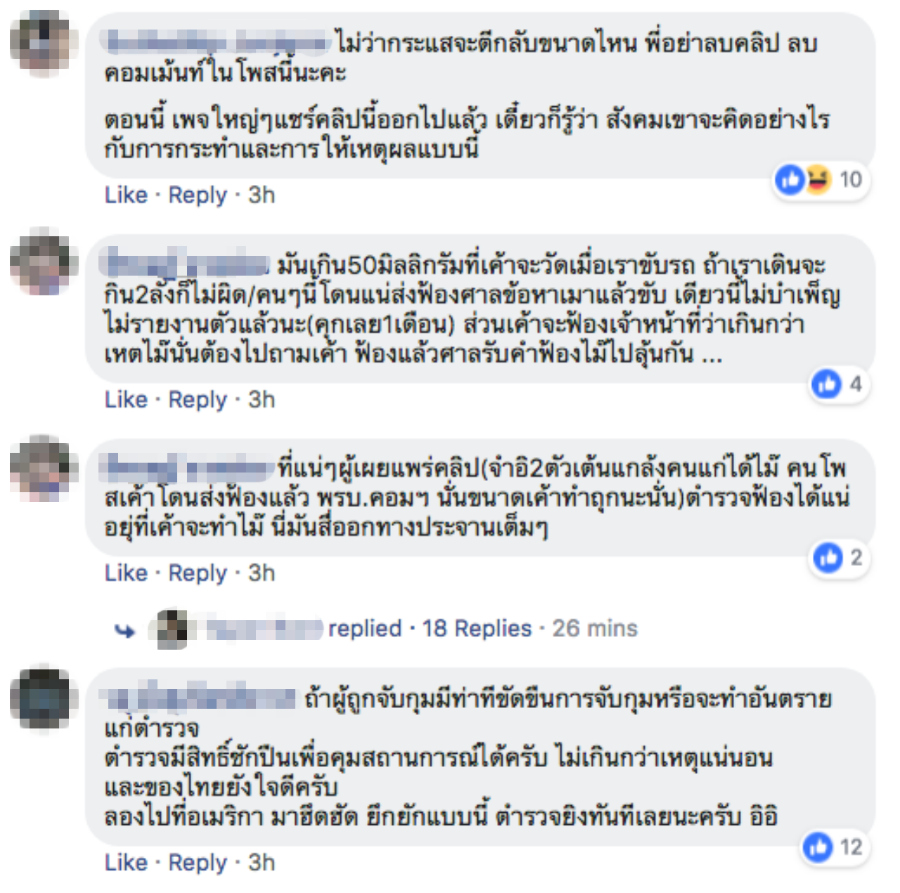ทั้งนี้ ชาวเน็ตที่ได้ชมคลิปส่วนใหญ่เข้ามาแสดงความคิดเห็นว่าสิ่งที่เจ้าหน้าที่ตำรวจทำนั้นถูกต้อง เพราะคนถูกจับเมาและมีปริมาณแอลกอฮอล์ 54 มิลลิกรัมเปอร์เซ็นต์ ซึ่งเกินที่กฎหมายกำหนด ซ้ำยังพยายามขัดขืนเจ้าหน้าที่ จึงต้องถูกใส่กุญแจมือเพื่อควบคุมตัวไป พร้อมกันนี้ยังฝากถึงผู้โพสต์ด้วยว่าอย่าลบคลิปเพราะเป็นหลักฐานมัดตัวอย่างดี.