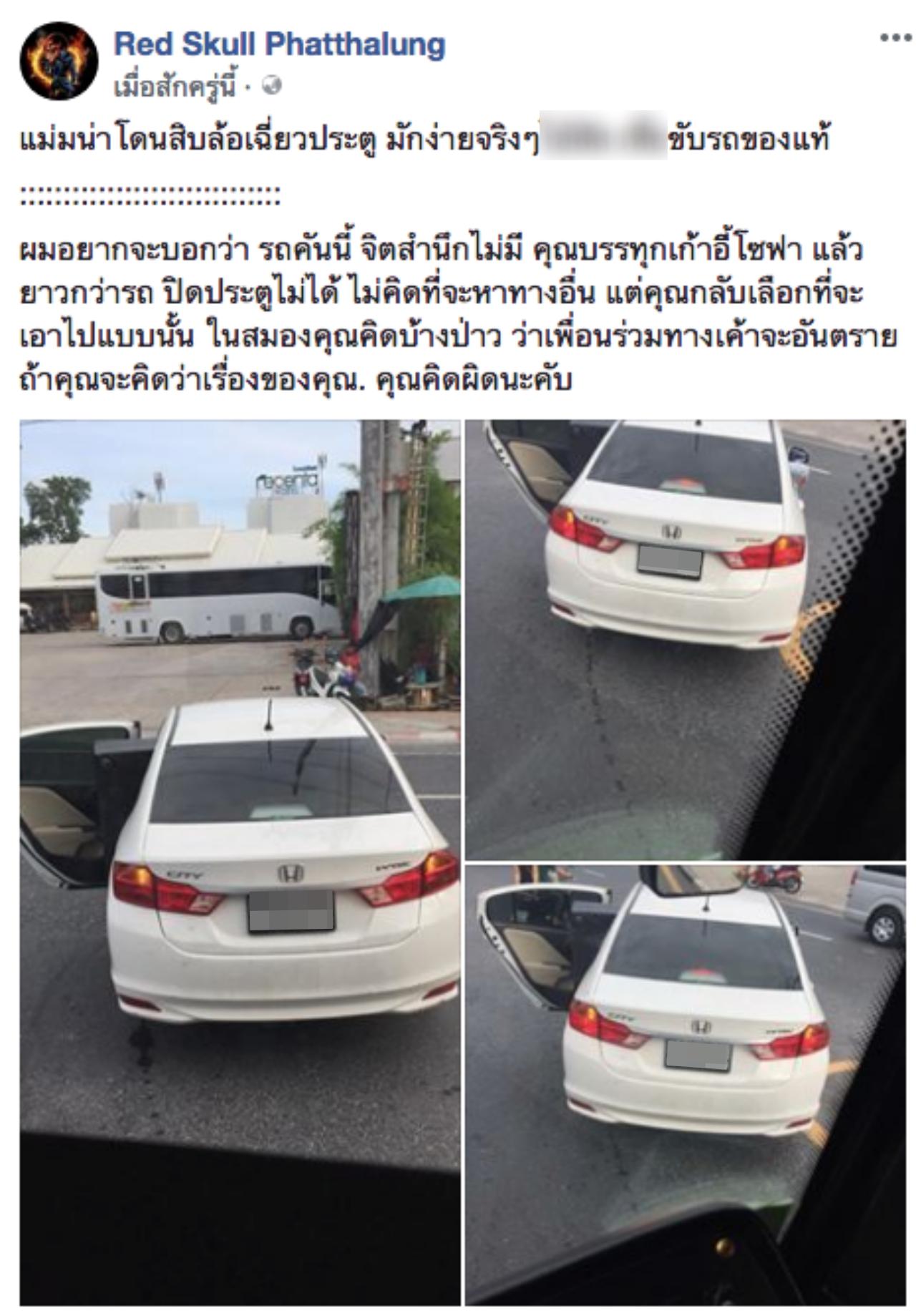 วันที่ 2 มิ.ย. 61 แฟนเพจ Red Skull Phatthalung ได้เผยภาพรถเก๋งสีขาวคันหนึ่งที่เปิดประตูรถด้านหลังไว้ 1 ข้าง เพราะติดโซฟาที่ยื่นออกมานอกรถ กำลังวิ่งอยู่บนถนนใหญ่ โดยผู้โพสต์ระบุว่า "ผมอยากจะบอกว่า รถคันนี้ จิตสำนึกไม่มี คุณบรรทุกเก้าอี้โซฟา แล้วยาวกว่ารถ ปิดประตูไม่ได้ ไม่คิดที่จะหาทางอื่น แต่คุณกลับเลือกที่จะเอาไปแบบนั้น ในสมองคุณคิดบ้างเปล่าว่าเพื่อนร่วมทางจะอันตราย ถ้าคุณจะคิดว่าเรื่องของคุณ คุณคิดผิดนะครับ"
