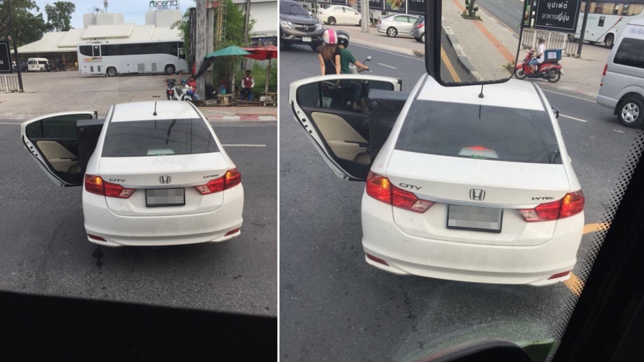 สะดวกแบบนี้! เก๋งขาวมักง่าย ขนโซฟายาวเลยออกนอกรถ วิ่งบนถนนทั้งที่ประตูรถเปิดอ้า หวั่นเพื่อนร่วมทางไม่ทันระวัง เกิดอุบัติเหตุ...