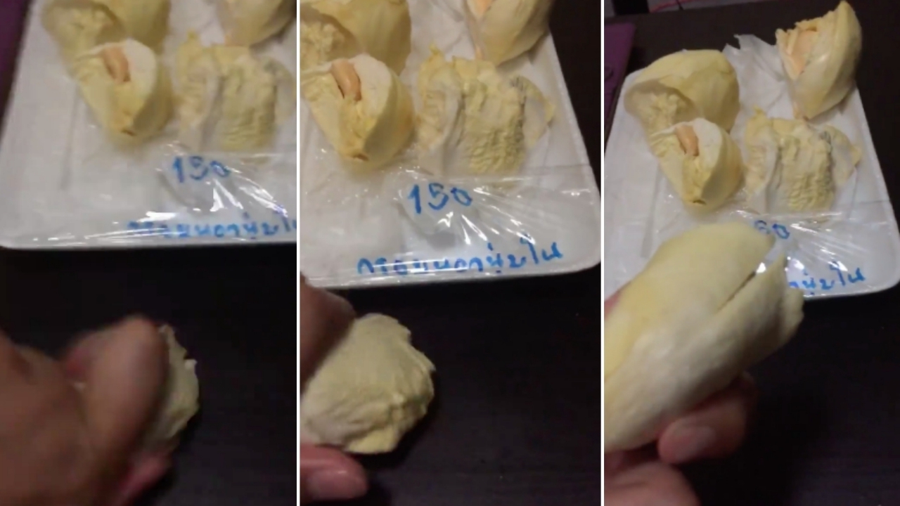 ผู้ใช้เฟซบุ๊ก Pitchaya Sirimungkalakul ได้โพสต์คลิปทุเรียนที่ซื้อมาจากแม่ค้า ระบุว่า "ทุเรียนของฉัน ฟอสซิลของฉัน" ซึ่งเป็นทุเรียนที่แกะแล้วบรรจุในถาดโฟมประมาณ 5 เม็ด มีปากกาเมจิกเขียนว่า 150 กรอบนอกนุ่มใน