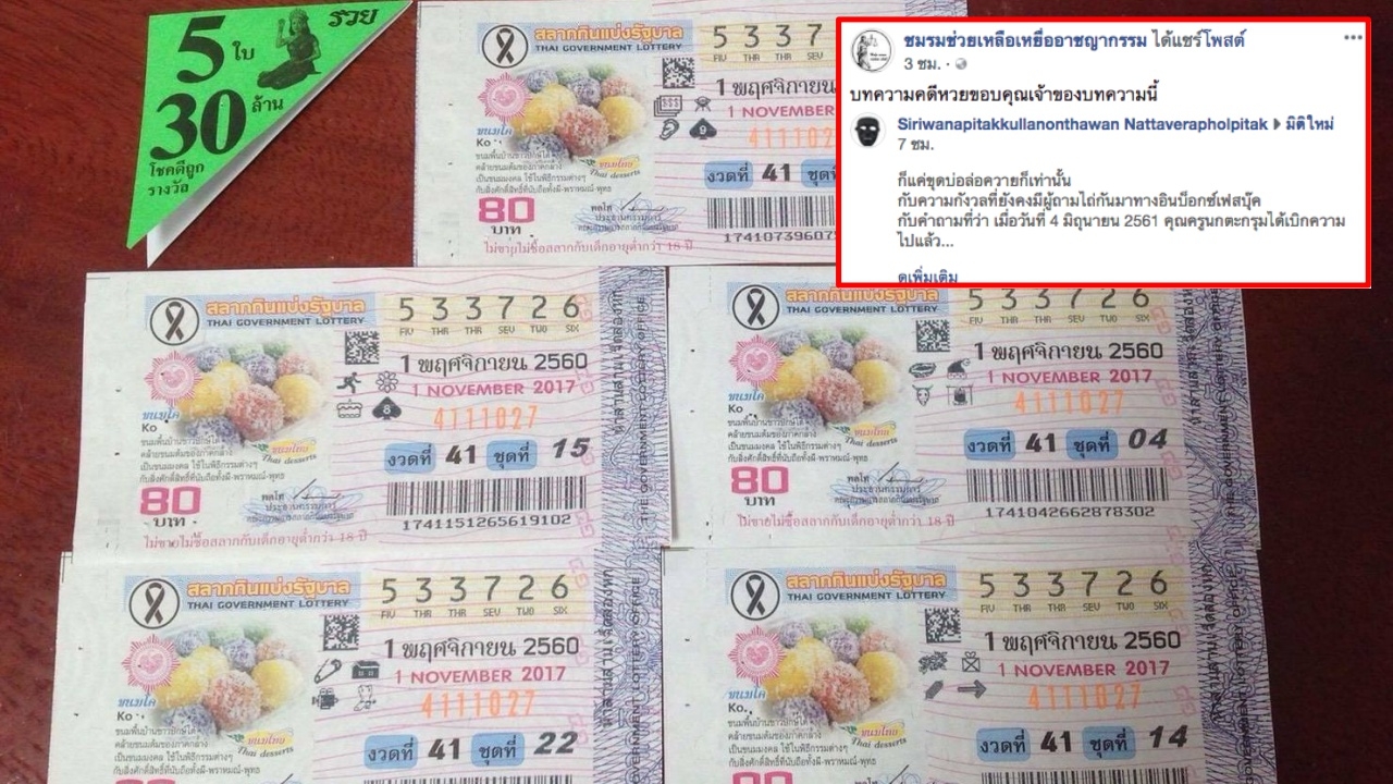 เฟซบุ๊กเพจ ชมรมช่วยเหลือเหยื่ออาชญากรรม ได้แชร์บทความคดีหวย 30 ล้านของ 'Siriwanapitakkullanonthawan Nattaverapholpitak' ที่โพสต์ลงในกลุ่มมิติใหม่ เกี่ยวกับ ความกังวลที่คนอินบ็อกซ์เข้ามาถามทางเฟซบุ๊ก เกี่ยวกับคดีหวย หลังครูได้ขึ้นเบิกความไป เมื่อวันที่ 4 มิถุนายน และถูกทนายหนุ่มรูปหล่อ ร้องขอให้ตรวจสอบหลักฐานการสนทนาผ่านแอปพลิเคชัน “ไลน์” ด้วย แต่ปรากฏว่าทนายหนุ่ม ลืมยื่นใบแต่งทนาย และถ้าสมมติว่าทนายอีกฝ่าย ยื่นคำร้องขอให้เพิกถอนกระบวนพิจารณานับตั้งแต่ที่ทนายหนุ่มถามค้าน และถ้ามีการสั่งให้เพิกถอนจริงๆ และให้ครูมาเบิกความใหม่ แล้วแบบนี้ ครูจะไม่พลิกลิ้น และทนายหนุ่มจะไม่เสียเปรียบหรือ