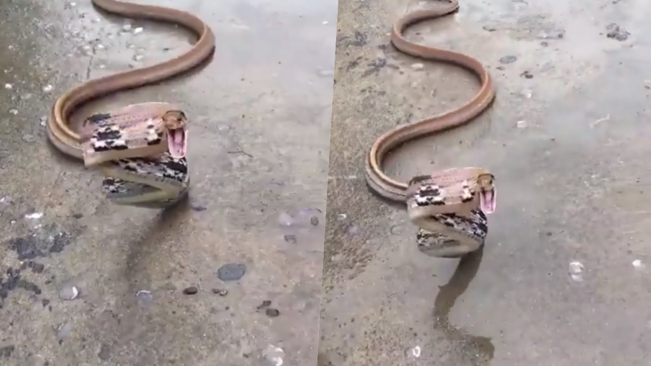 ชาวเน็ตสงสัย งูอะไรโหดมาก งอตัวพร้อมฉกตลอดเวลา พบเป็นงูทางมะพร้าวไร้พิษภัย