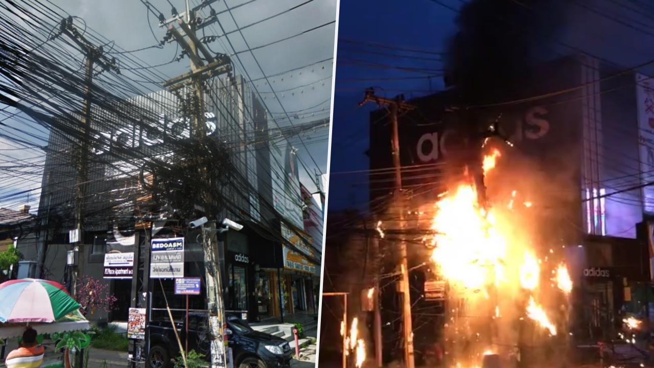 เปิดภาพเทียบความยุ่งเหยิงของสายไฟ-สายเคเบิล บริเวณถนนนิมมานเหมินท์ ซอย 2 หลังเพลิงไหม้หนักช่วงกลางดึกที่ผ่านมา...