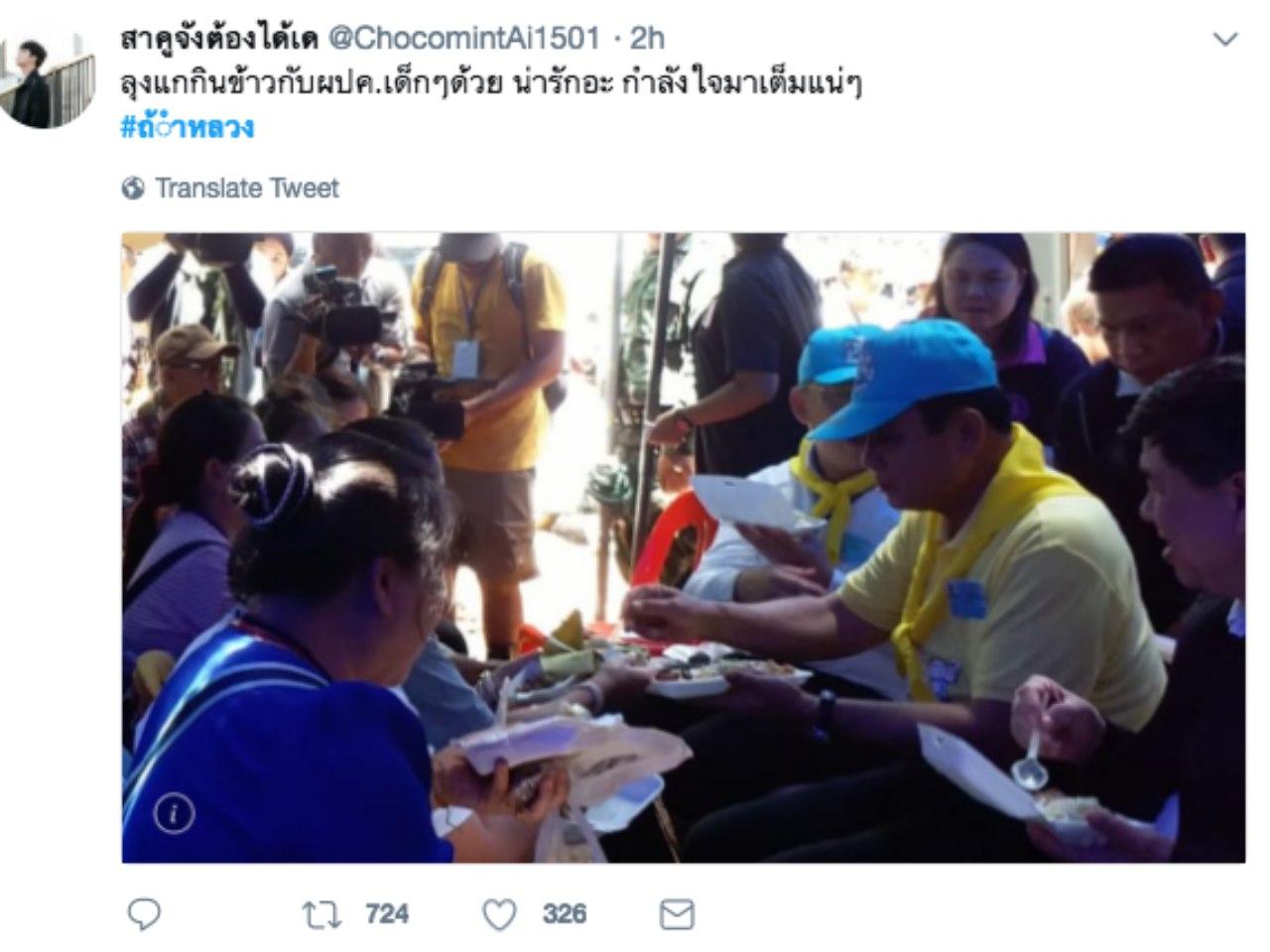 ชาวโซเชียล ชม 'ลุงตู่' พล.อ.ประยุทธ์ จันทร์โอชา นายกรัฐมนตรี มาถูกเวลา เพิ่มขวัญกำลังใจให้เจ้าหน้าที่ทีมค้นหา และญาติ 13 ชีวิตติดถ้ำหลวง