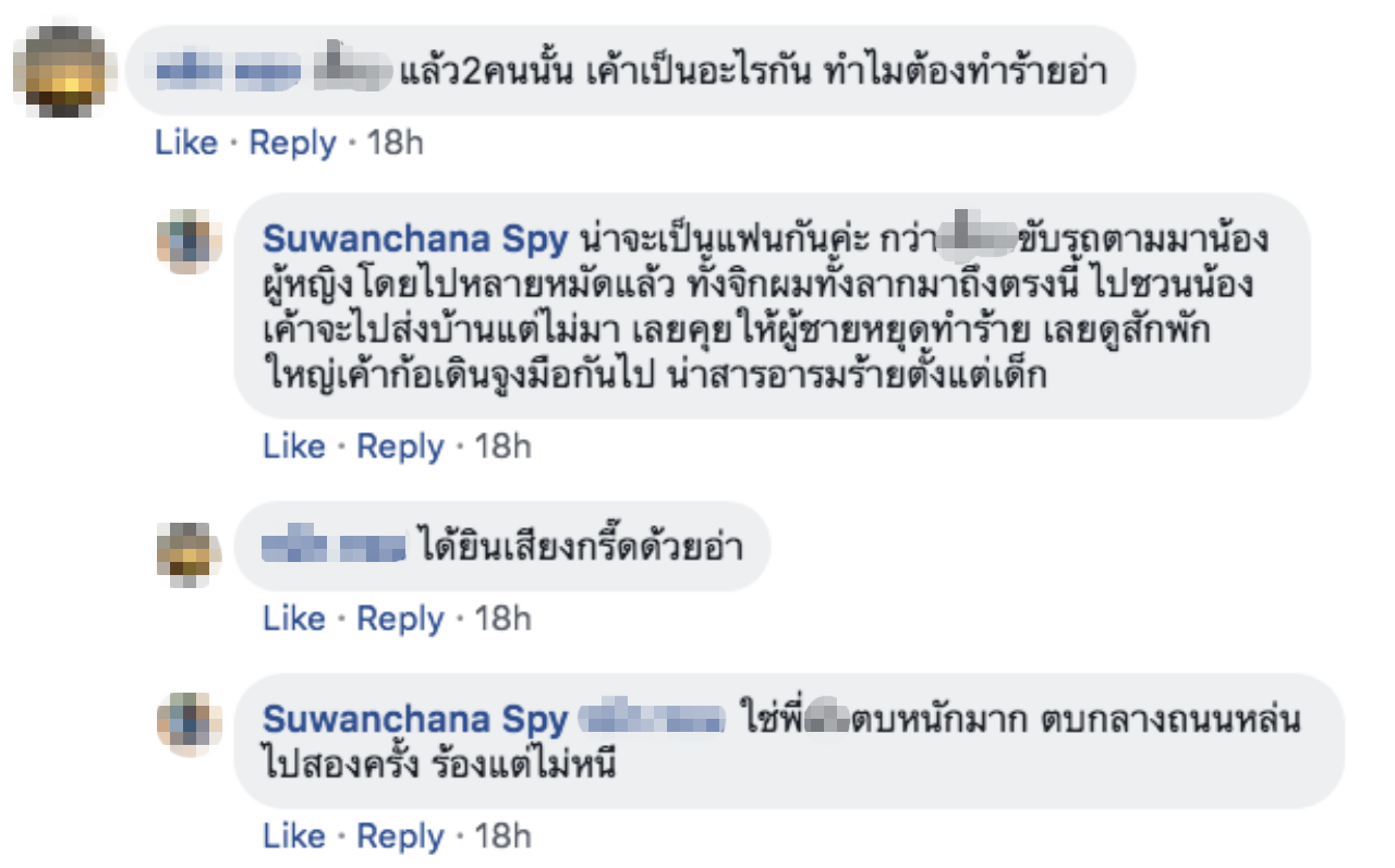 ทั้งนี้ ผู้โพสต์ซึ่งเป็นแฟนสาวของชายหนุ่มพลเมืองดี ได้อธิบายเพิ่มเติมในคอมเมนต์ด้วยว่า คาดว่าทั้งคู่น่าจะเป็นแฟนกัน ขับรถตามมาเห็นน้องผู้หญิงโดนไปหลายหมัดแล้ว ทั้งจิกผม ทั้งลากมาถึงตรงนี้ ไปชวนน้องเขาจะไปส่งบ้านแต่ไม่มา เลยคุยให้ผู้ชายหยุดทำร้าย อยู่ดูสักพักใหญ่เขาก็เดินจูงมือกันไป.