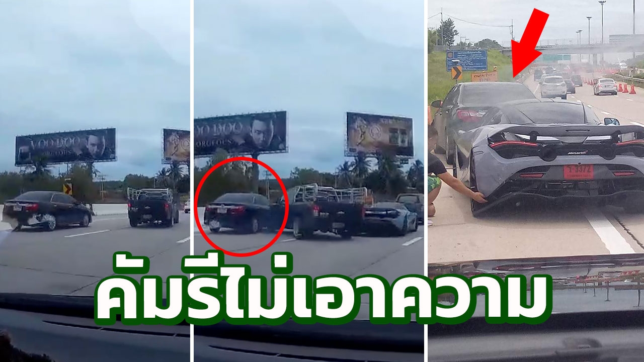 ย้อนดูคลิปอีกครั้ง ไม่ใช่เพียงเจ้าของ McLaren 720S ให้อภัยคนเดียว แต่คัมรีสีดำ ที่ถูกชนคันแรกก็ไม่เอาความ...