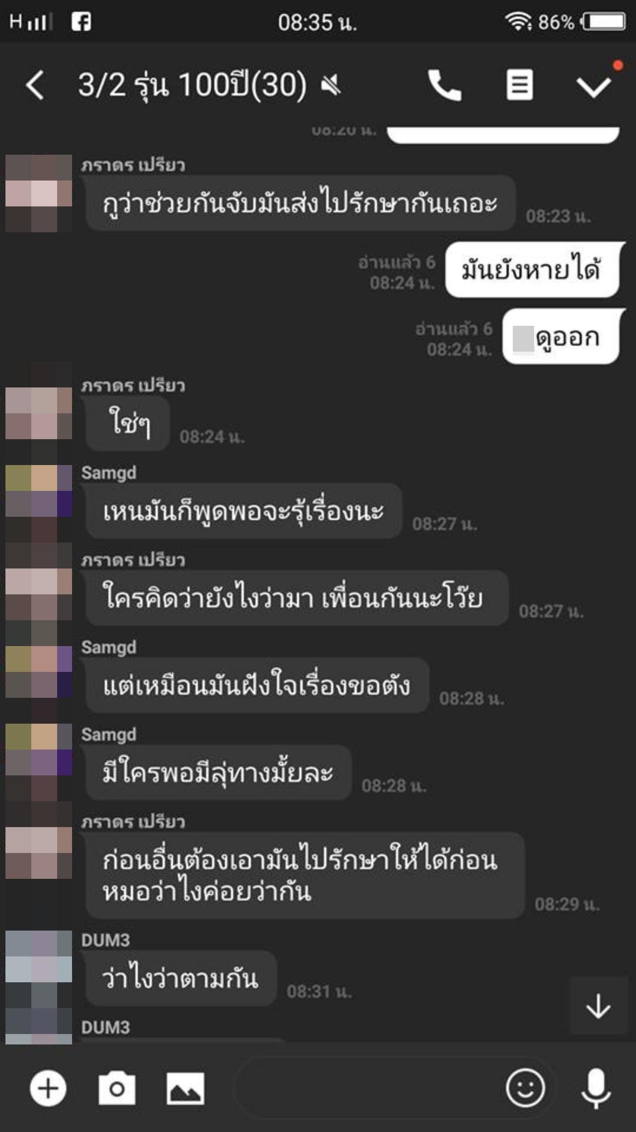 อย่างไรก็ตาม พบว่าได้มีคนแคปภาพจากกลุ่มไลน์ 3/2 รุ่น 100 ปี ได้มีการพูดคุยปรึกษากันว่าจะพาเพื่อนไปรักษาให้หายจากอาการนี้ โดยมีคนเข้ามาให้กำลังใจกันอย่างมาก.