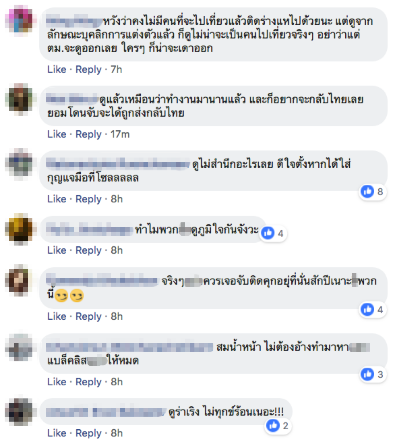 ขณะที่ชาวเน็ตต่างเข้ามาวิพากษ์วิจารณ์คลิปดังกล่าวในทำนองว่า คล้ายกับคนถูกจับจะไม่ได้รู้สึกว่าตัวเองกำลังทำผิด แต่บางส่วนก็คาดเดาว่าน่าจะลอบทำงานมานาน และอยากกลับไทยจึงยอมโดนจับ.