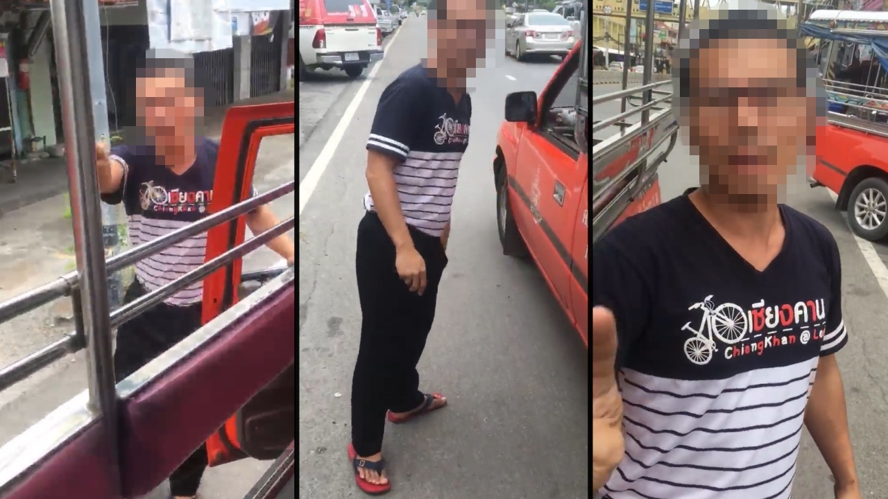 หนุ่มโพสต์คลิปถูกคนขับสองแถวไล่ลงจากรถอีกคัน อ้างไม่ใช่รถที่วิ่งตามคิว ก่อนโต้กลับเป็นสิทธิ์ที่จะเลือกขึ้นได้...