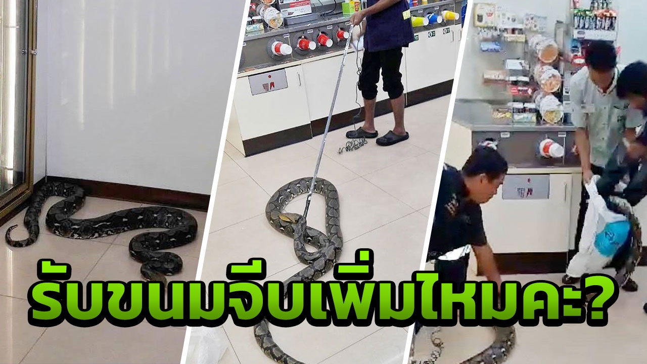 หิวเหลือเกิน หิวเกินใจจะทนไหว! งูเหลือมตัวใหญ่บุกร้านสะดวกซื้อ นอนขดนิ่งๆ ร้อนถึงพนักงานแจ้งกู้ภัยช่วยจับออกมา ชาวเน็ตแซว เพราะหิวเลยแวะมา