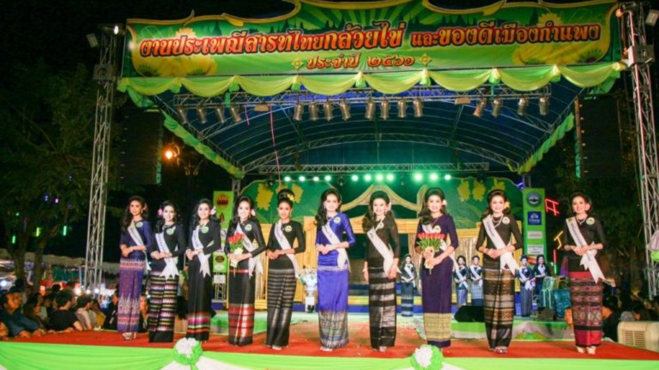 สาวงามเมืองกล้วยไข่ 64 คน ขึ้นเวทีประกวดโฉมชิงตำแหน่ง "ธิดากล้วยไข่" ในงานประเพณี "สารทไทยกล้วยไข่และของดีเมืองกำแพง" ท่ามกลางนักท่องเที่ยวเข้าชมกันจนล้นหลามหลายพันคน...