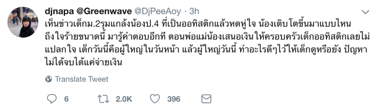 จากกรณี คลิปเด็กหญิง ป.4 ออทิสติก ถูกรุ่นพี่ ม.2 สางผม ก่อนรุมกระชากหัว เจ็บจนร้อง ซ้ำโดนอุดปาก สั่งให้เงียบ โดยมีรุ่นพี่ชายอีกคนเป็นคนถ่ายคลิปไว้ได้ ก่อนที่ ผอ.โรงเรียน เจรจาให้เด็กรุ่นพี่ชดใช้ครอบครัวเหยื่อคนละ 500 บาท พร้อมทำทัณฑ์บนเพื่อจบปัญหา ตามที่เสนอข่าวไปแล้วนั้น