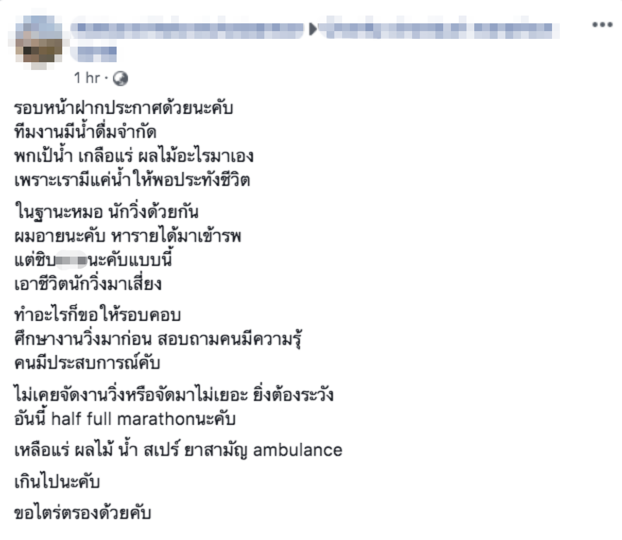ท๊อฟฟี่ สามบาทห้าสิบ โพสต์ฉะงานวิ่งการกุศล น้ำหมดไม่พอให้นักวิ่งดื่ม ด้านนักวิ่งโพสต์บ่นระงม ต้องดื่มน้ำจากมือ บางรายได้แต่น้ำแข็ง...